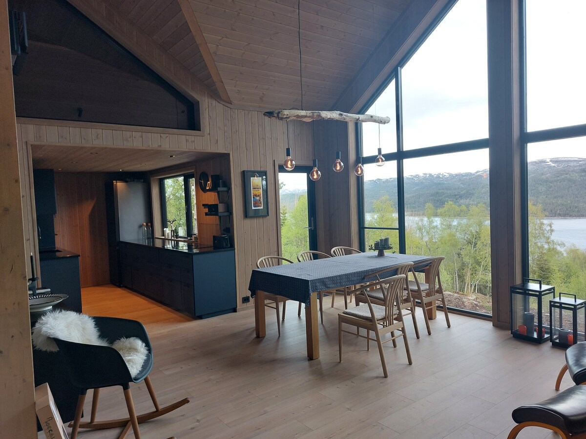 Ang cabin ay bagong taglagas 2022, na may malalaking bintana na kumukuha ng kalikasan sa cabin. Mga terrace sa lahat ng gilid ng cabin para masiyahan sa araw mula sa madaling araw hanggang sa maagang gabi. Angkop para sa 2 pamilya o mga grupong may sapat na gulang ng mga kaibigan. Mainam para sa mga bata. Magandang paglalakad simula sa cabin. Maaaring mag - alok ang Bortelid ng mga karanasan sa kalikasan sa mga minarkahang trail, peak, mountaineering, bike trail, pangingisda para sa mountain trout, pag - upa ng kayak, frisbee court. 18 basket. Mini golf. Mga pasilidad sa paliligo sa tubig. Grocery store.