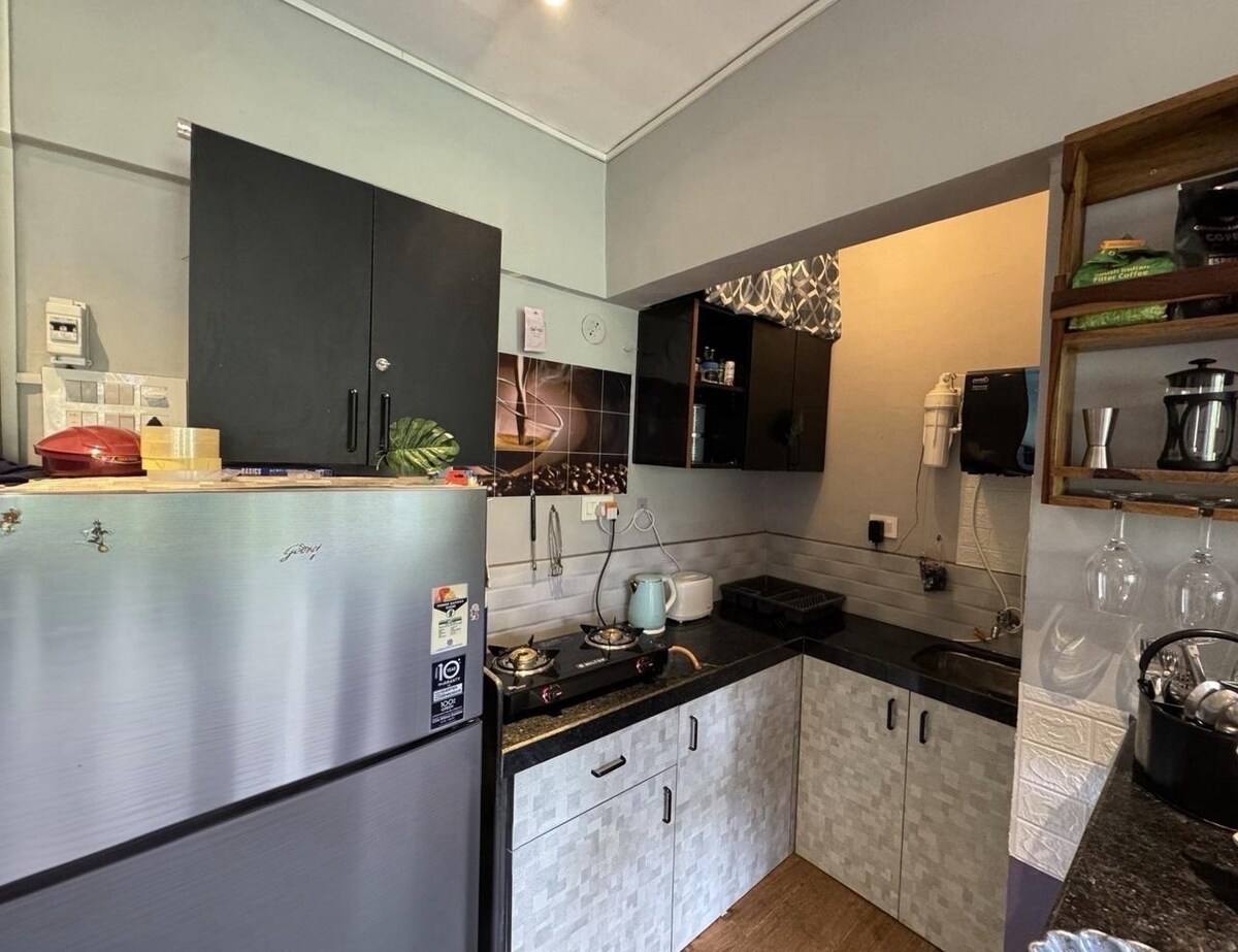 Welcome sa Ancessaao 🏡🌴—ang totoong bakasyunan sa Goa sa Assagao, 10 min lang mula sa Vagator at Anjuna Idinisenyo para sa mababang pamumuhay at mga paglalakbay na may kasama, ang cabin na ito ay may kagandahan at modernong kaginhawa, perpekto para sa mga mag‑asawa o naglalakbay nang mag‑isa na naghahanap ng pagpapahinga at privacy. Mga Pangunahing Tampok AC at Wifi ❄️| TV at munting refrigerator 🍺| Pribadong veranda at maaraw na interior 🛏️| Kitchenette (hindi kusina)| Tsaa, kape, at gatas na nasa sachet ☕| Power backup ⚡| May labahan| May gate ang property 🚪| May paradahan sa loob 🅿️