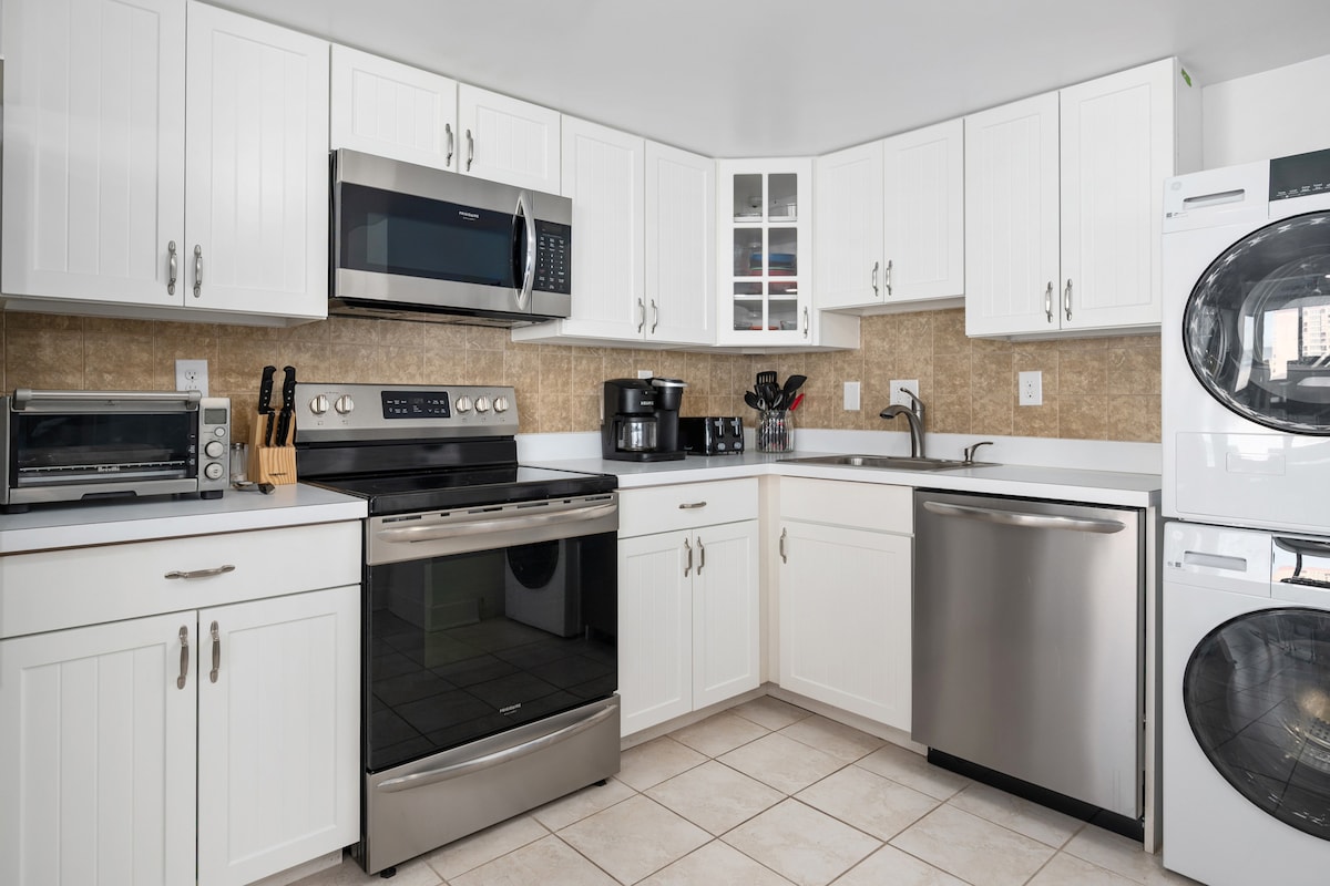 LAHAT NG KAGINHAWAAN NG TAHANAN SA BEACH! MGA BAGONG INAYOS NA BANYO! - KASAMA ANG LAHAT NG LINEN - Mga komportableng de - kuryenteng sofa -65 - in smart Roku TV na may soundbar. - Massage chair sa master bedroom - Balcony & Dining Area w/ Ocean +Bay View - In - unit W/D - Maraming maginoo at USB outlet - Nagtatampok ang antas ng arcade ng b - ball hoop, mga mesa ng pool, ping - pong, shuffleboard, air - hockey - Tennis court sa labas - Malalaking pinainit na panloob na pool - puwedeng lumangoy nang buo - Sauna at Gym - Mga board game sa unit - Mabilis na Wifi