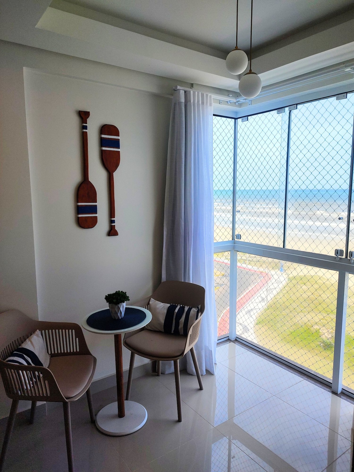 Modernong apartment, na nakaharap sa beach kung saan matatanaw ang dagat, na matatagpuan sa isang condominium na may caretaker. Napakahusay na matatagpuan, sa tabi ng plaza ng Parola, sa sentro ng Capão na may lahat ng amenidad. May dalawang maliit na lugar sa malapit. Mayroon itong espasyo ng kotse, saradong paradahan. Tunay na praktikal na kusina na may induction cooktop, refrigerator/freezer, microwave, coffee maker at mga pangunahing kagamitan sa kusina. Living room na may bed - coach, TV at Wi - Fi internet. Kuwartong may 1 pandalawahang kama at 1 pang - isahang kama. Hatiin: silid - tulugan at sala.