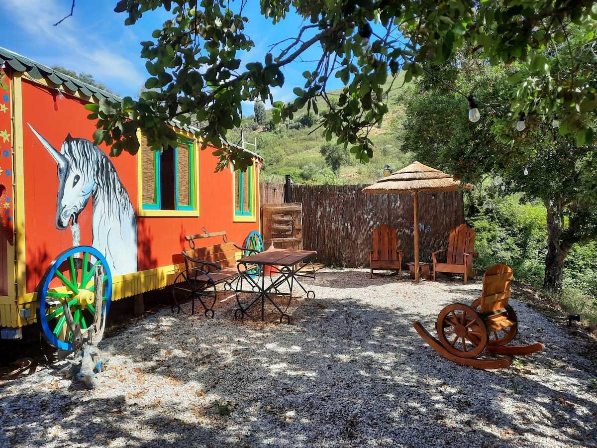 I - unwind sa aming romantikong, Dali - inspired Circus Wagon nakatago sa gitna ng mga puno ng cork sa Talurdo Retreat. Nagtatampok ang solar - powered glamping cabin na ito ng komportableng higaan, pribadong hardin na may upuan, maliit na kusina, at nakakapreskong solar shower sa labas. Perpekto para sa mga mag - asawang naghahanap ng kapayapaan, kalikasan, at off - grid na kagandahan. May access ang mga bisita sa sauna, swimming pool, yoga deck, at marami pang iba. Isang natatanging pagtakas para makapagpabagal at muling kumonekta.