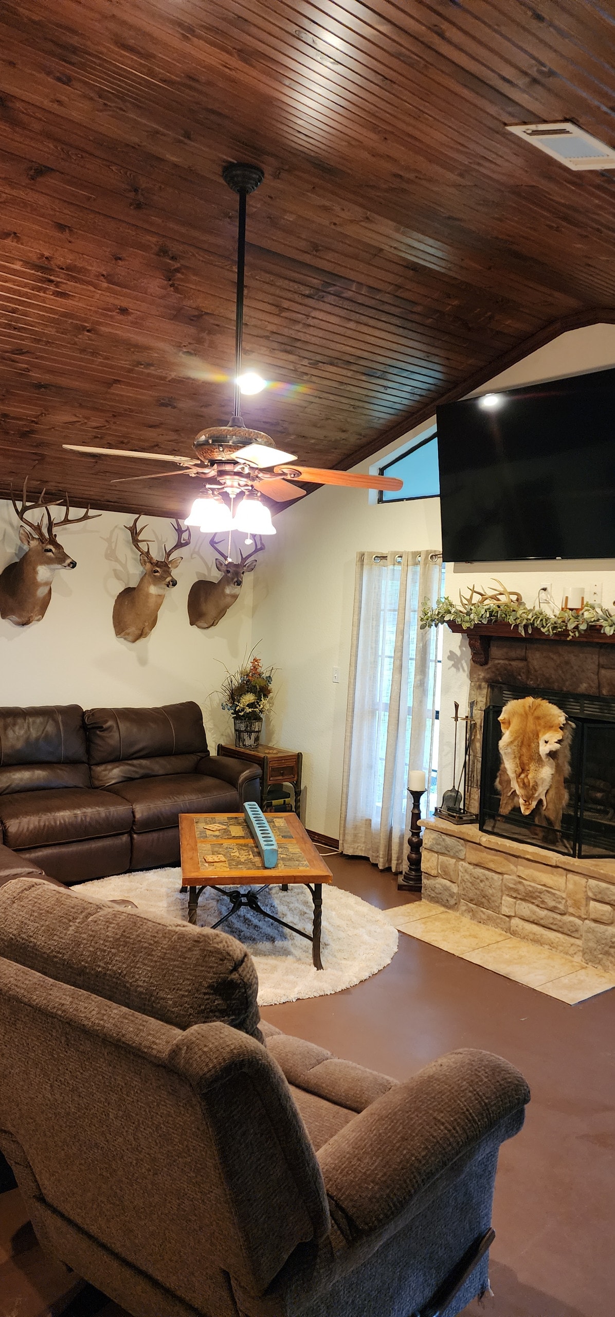 Minimum 2 night stay. Relax with the whole family at this peaceful place. Secluded down a private drive with trees, wildlife, and a pond. Escape to The Ranch for wildlife watching, hiking, fishing, peace & quiet quality family time. Sleeps 14 adults comfortably, 16 if children are in group (sharing of 2 full size beds). Perfect spot for church, photography, or leadership retreats, trail rides, or family/friend get aways.