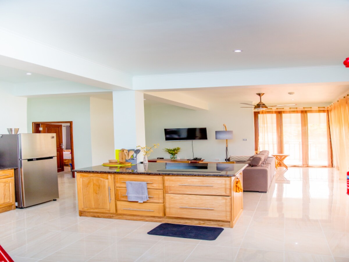 Dalawang silid - tulugan na apartment - Tuktok na Palapag - Nagtatampok ng bahagyang tanawin ng dagat mula sa balkonahe. Naka - air condition ang magkabilang kuwarto sa apartment. Kasama rito ang open - plan lounge. Kusina at kainan, pati na rin ang access sa lugar ng BBQ. Nilagyan ang banyo ng shower. matatagpuan ang castaway Lodge na 8 KM mula sa Seychelles International airport at 500 metro mula sa restaurant at rum distillery na La Plaine St. Andre. 2 km ang layo ng Seychelles Golf Club at 3 km ang layo ng Anse Royal beach mula sa Lodge.