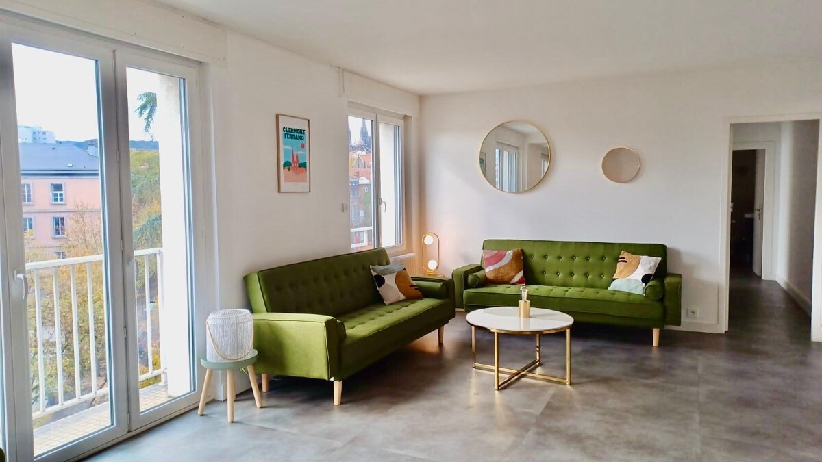 10'lang mula sa downtown, para kang nasa kanayunan, sa malaking 70m² 1 bedroom appartement na ito, na ganap na na - renew noong 2018, sa isang mapayapang residensyal na kapitbahayan, na may kamangha - manghang tanawin sa ibabaw ng Clermont - Ferrand at kapaligiran. Narito ang likod - bahay na may trampoline, grill, at swimming pool para sa perpektong pamamalagi.