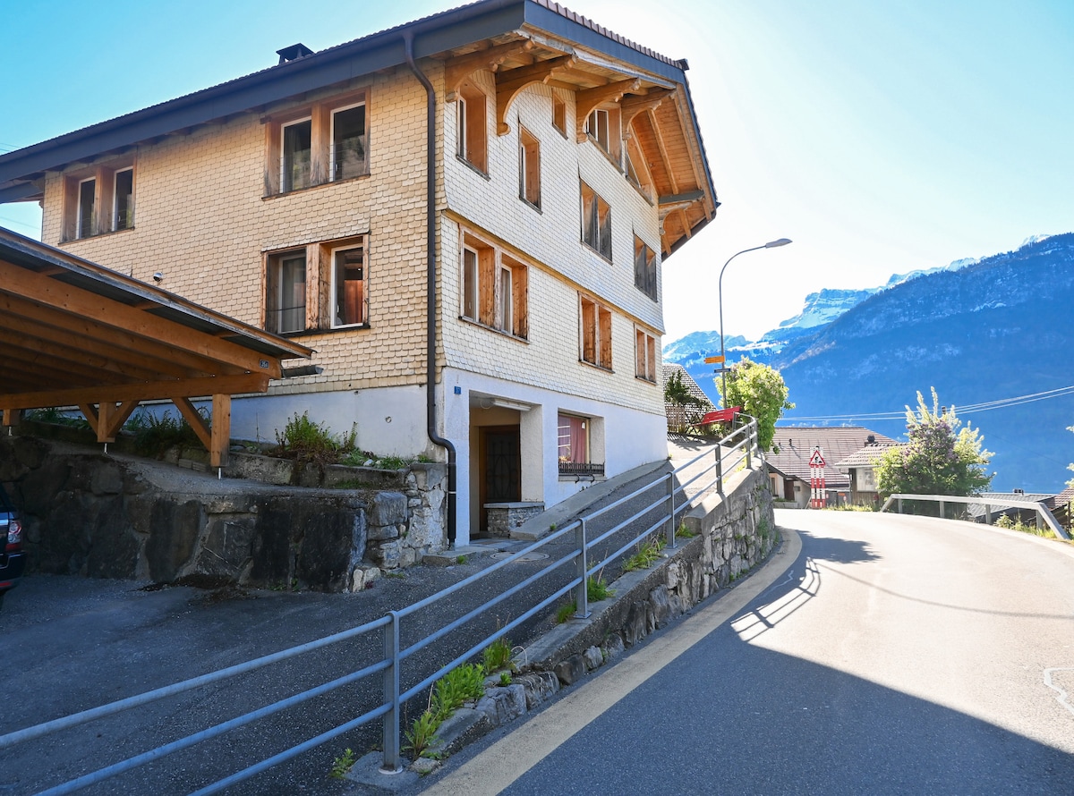 A spacious modern flat in the centre of the small town of Ringgenberg. Large terrace with amazing mountain view and a quiet place to come back to, unwind after a day of sightseeing or outdoor activities. Short walk to hiking trails, Lake Brienz and amenities such as bank, post office, restaurant, small store or bakery. A 3 minute walk to the bus stop. Free public transportation with the provided Guest Cards and only 2 stops away from Interlaken.