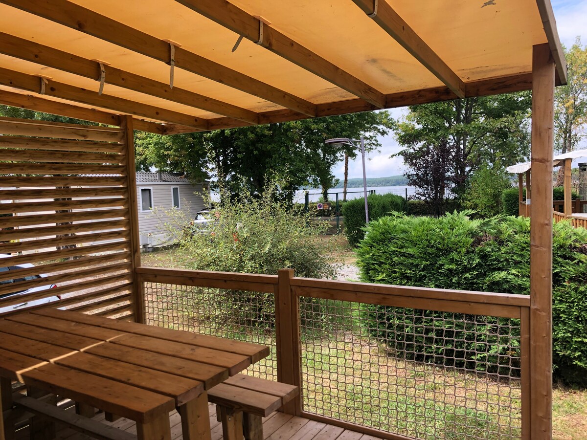 Mag - enjoy kasama ang pamilya o mga kaibigan sa munting lugar na ito sa isang cocooning spirit mobile home para sa hanggang 6 na tao -1 double bed, 2 silid - tulugan 2 pang - isahang kama - mamalagi nang may aircon, TV - Kumpletong kagamitan sa banyo sa kusina, banyo na may shower cubicle malalaking terrace na may 5 - star na campsite na may bagong parke ng tubig para sa mga bata. Mga club,restawran , matutuluyang bisikleta. souvenir shop, access sa lawa nang direkta sa paglalaba atbp.. mga sapin na ibinigay