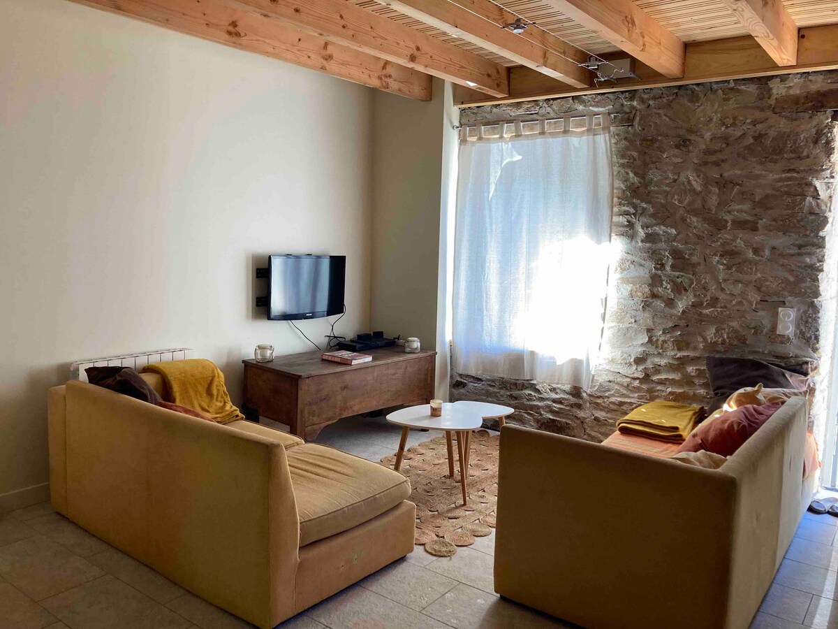 6 km mula sa A75 motorway, sa isa sa mga pinakamagagandang nayon sa France, 16 m2 independiyenteng kuwarto sa bahay ng dating winemaker, direktang access mula sa nakapaloob na hardin na may mga armchair at mesa. Kabuuang kalmado, may vault na silid - tulugan na may shower room (palanggana at shower cubicle) at hiwalay na toilet, blackout blind, armchair, malinis na dekorasyon. Pwedeng gamitin ang mga bisikleta. Posible ang almusal € 10 bawat tao Dalawang ilog ang dumadaloy sa nayon ng 635 naninirahan, dalawang restawran at pangunahing tindahan.