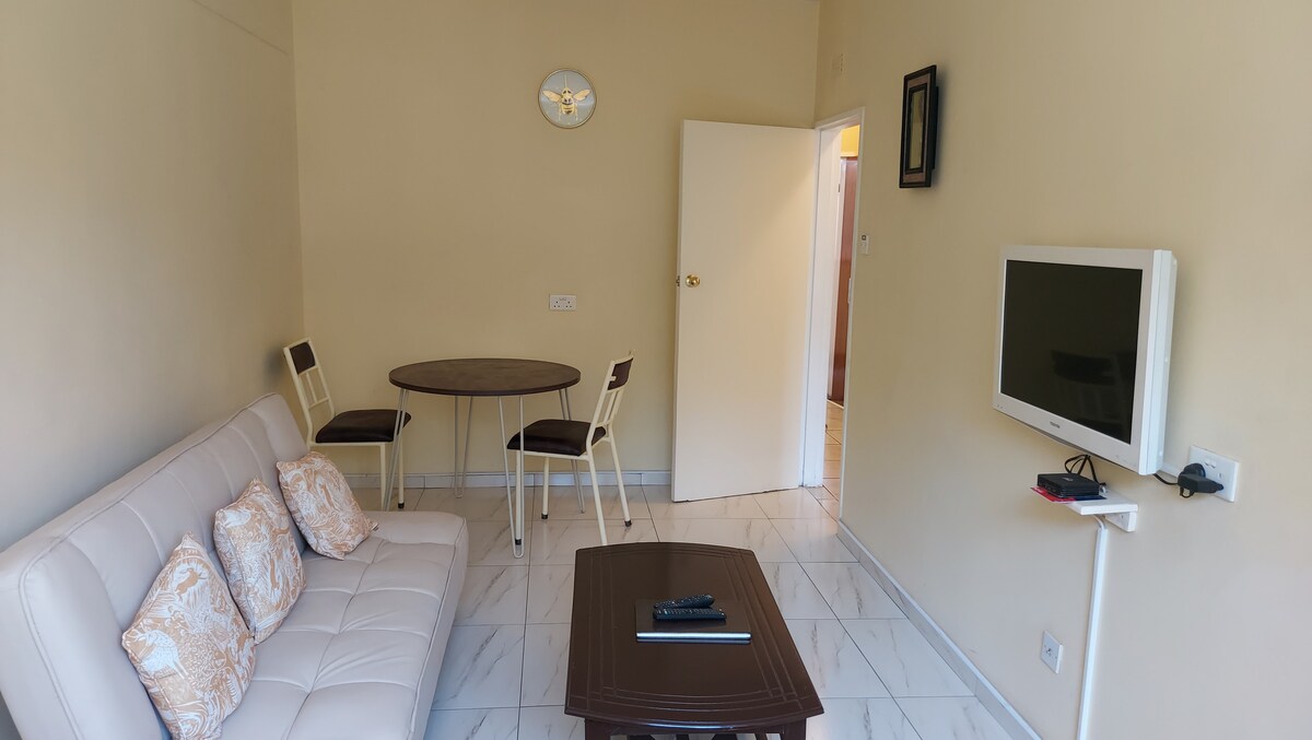 Malapit sa lahat ang espesyal na lugar na ito, na ginagawang madali ang pagpaplano ng iyong pagbisita. Ang kahanga - hangang ground floor apartment na ito ay may 2 silid - tulugan at itinayo sa mga aparador. May lounge cum dining room at hiwalay na nilagyan at kakaibang kusina. Ang apartment ay may 10 000l back up water tank, 3kva inverter /solar power back up, 55 pulgada na smart TV na nagtatampok sa You tube, Netflix atbp. May mainit na shower na may magandang presyon , mabilis na walang takip na wifi. Napakahalaga at malapit sa maraming mahahalagang serbisyo, hal., mga supermarket, ospital.