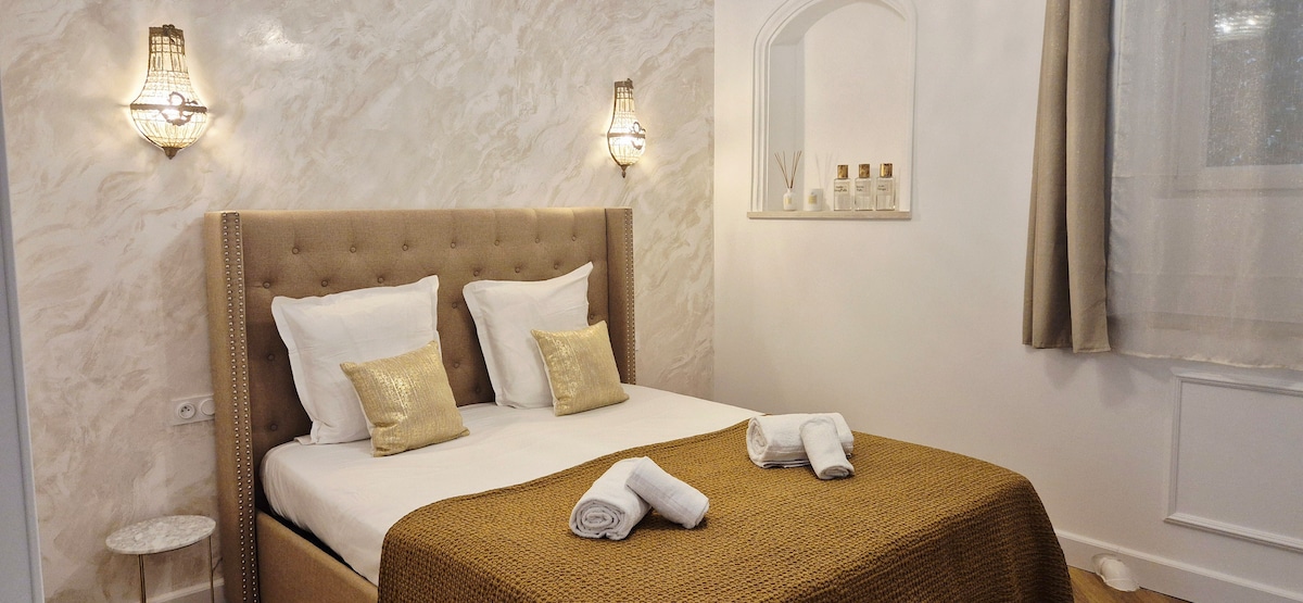 Isang apartment na itinayo noong ika‑17 siglo sa iconic na Hôtel de Félix na may air‑con sa buong lugar para sa kumpletong kaginhawaan. Puwede mong tuklasin ang buong Avignon dahil sa pambihirang lokasyon nito. Ilang minuto lang ang layo ng Palais des Papes, mga makasaysayang kalye, at mga dapat puntahan. Sa tapat lang ng kalye, may pambihirang lokal na produkto tuwing umaga sa pambihirang pamilihang Les Halles—perpekto para maranasan ang sining ng pamumuhay sa Provence. Isang bihirang, elegante at tunay na address.