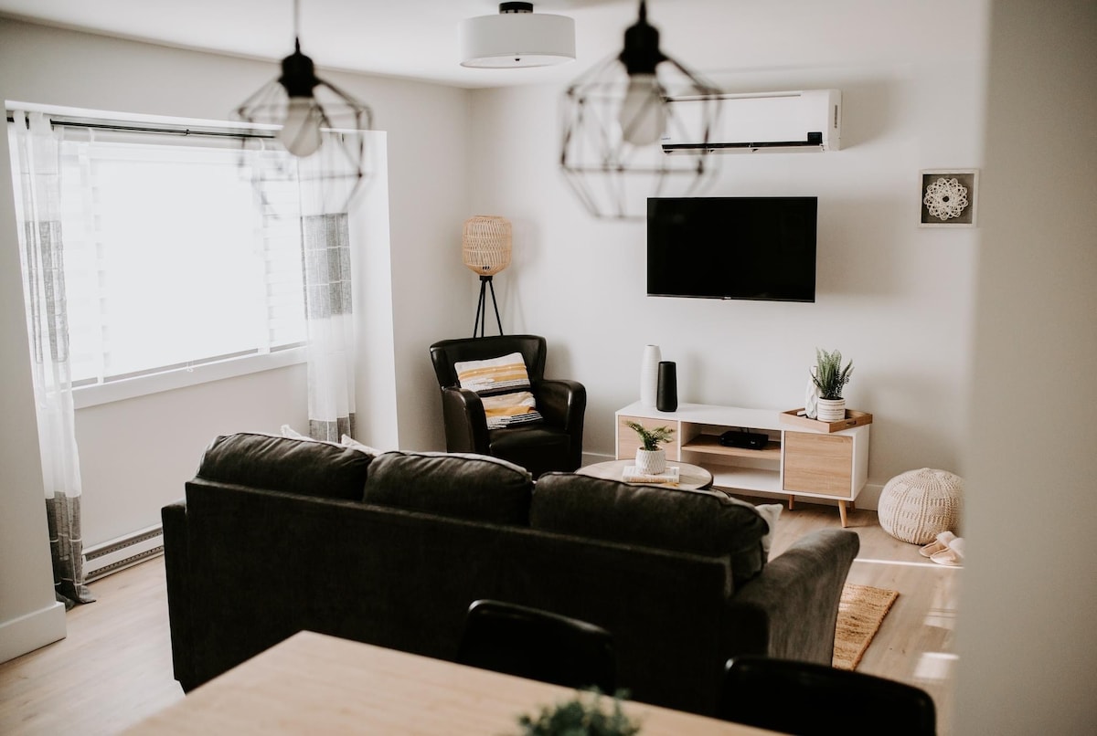 Nag - aalok ang komportableng bagong ayos na 2 - Bedroom na tuluyan na ito ng kaginhawaan, estilo, at Zen! May gitnang kinalalagyan sa Campbellton, ilang minuto lang ang layo mula sa Sugarloaf Provincial Park, Regional Hospital, mga daanan ng snowmobile, mall, restawran, at marami pang iba. Magugustuhan mo ang aming maliwanag at magandang sunroom; ito ay isang mapangarapin na lugar upang tamasahin ang iyong mga paboritong libro. Mayroon din itong isang tao sa araw na higaan, na mainam para sa pag - lounging sa panahon ng pamamalagi mo. Magrelaks habang bumibiyahe para sa trabaho o sa masayang bakasyon.