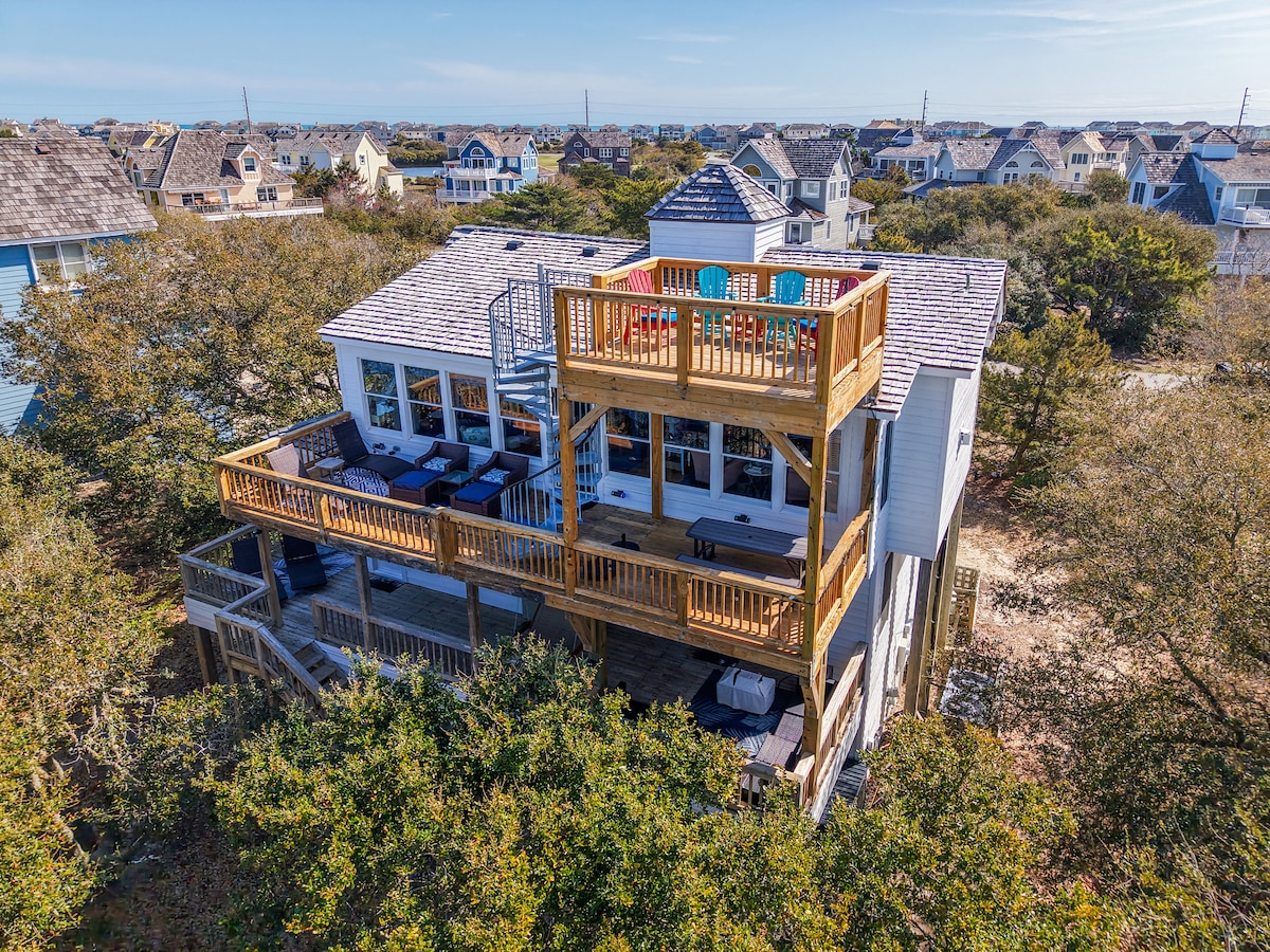 Maligayang Pagdating sa Windwatch Cottage! Isang nakakarelaks na coastal vibe na naghahalo ng lumang world cottage na may modernong disenyo. Ipinagmamalaki ng tuluyang ito ang isa sa pinakamagagandang tanawin sa Outerbanks na may direktang access sa tubig at sariling pier. Humigop ng kape sa umaga na may makapigil - hiningang pagsikat ng araw at maranasan ang makulay na paglubog ng araw mula sa mainit na hot tub! Kunin ang mga paddle board o kayak mula sa aparador, at kunin ang lahat ng tunog na inaalok mula sa tubig. Maigsing lakad lang ang layo ng Oceanside beach, mga coffee shop, restaurant, at bar.