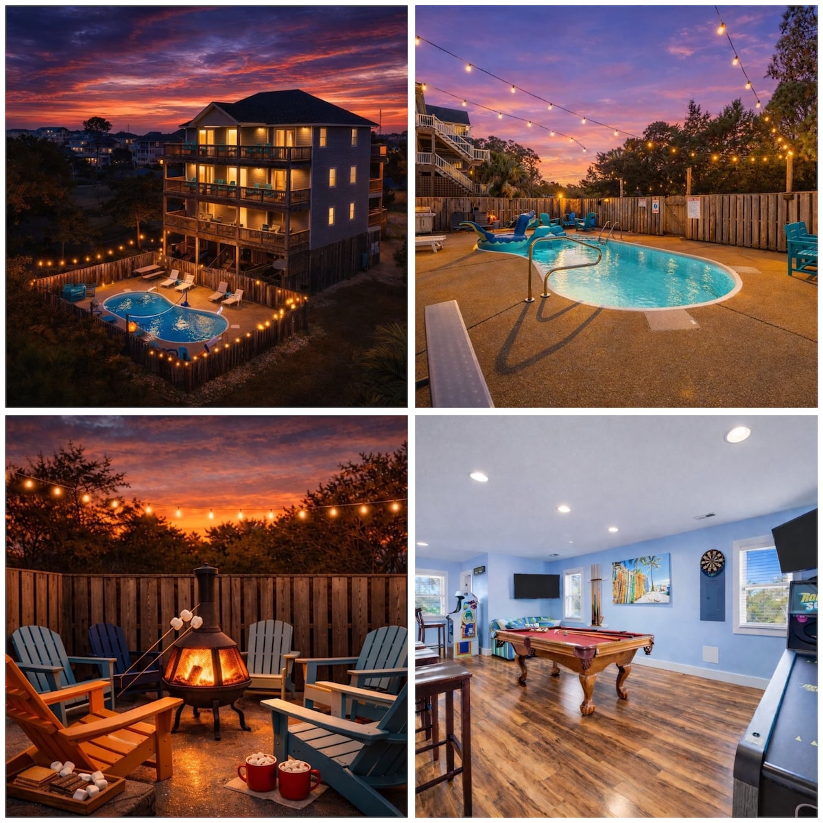 Once Upon a Tide - Outer Banks @__onceuponatide__ Escape to your dream beach house, where sleek modern updates blend seamlessly with a focus on ultimate family relaxation. The home sits just 4 blocks from the ocean's call and conveniently overlooks a beautiful lake, perfect for fishing & enjoying the sunset views. With a fully stocked playroom & safety features throughout, you won’t question how to spend time with your kids on rainy days or off the beach