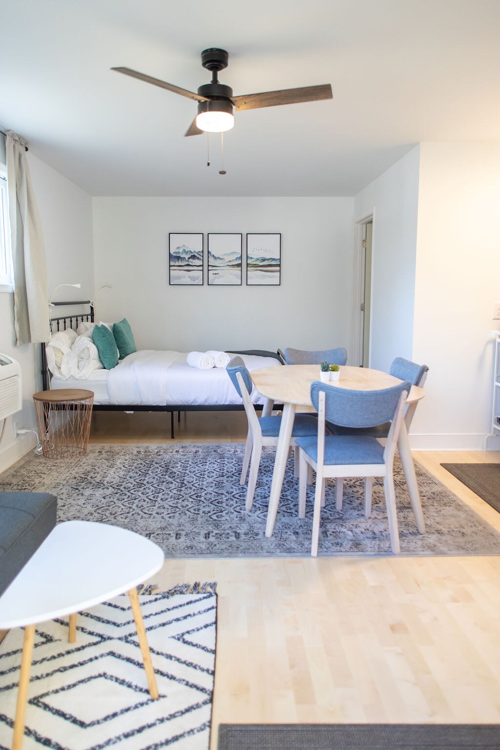 Enjoy a cozy getaway at our centrally-located carriage house, in the heart of sought-after Crozet, VA. Completely renovated in 2022, the carriage house feels brand new! Our space offers 1 queen bed and 1 full-bed pull-out couch. The space is .5 miles from downtown Crozet, 2.5 miles to King Family Vineyard and 3.5 miles to Chiles Orchard. It is equipped with a kitchen, a large closet (fits a pack n' play!), high speed internet and Apple TV. We have assigned parking spots in the driveway.
