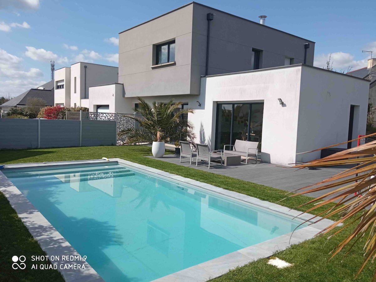 Le logement a été construit en 2020. Il est complètement indépendant. Cette petite maison propose une cour extérieur, une cuisine équipée, un salon avec canapé convertible (160 cm) et une télé. Chambre avec dressing et un lit en 160 cm. Salle de douche avec double vasque, douche et toilettes. La Wifi est à disposition. Nous sommes à 10 mn en voiture d'Angers. Nous serons présent pour vous recommander les meilleurs bons plans. Le tramway, une grande surface et des stationnements sont à proximité.