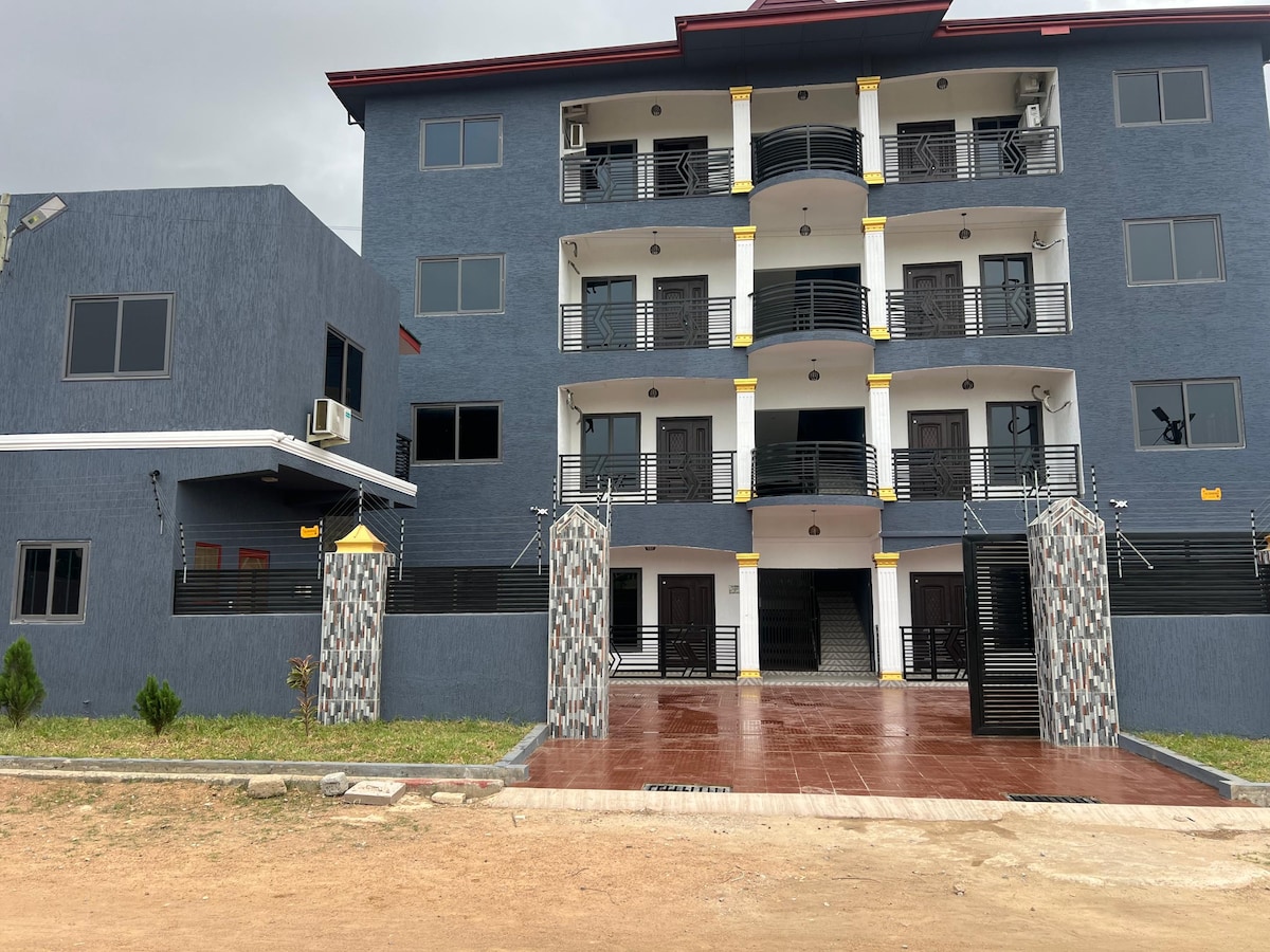 Ganap na inayos na 2 silid - tulugan na bahay na malayo sa bahay. Sa isang ligtas na compound na may CCTV, ang apartment na ito ay malapit sa mga amenidad. Wala pang 10mins na biyahe papunta sa Casea market at 15mins na biyahe papunta sa West Hills Mall. 30mins na biyahe papunta sa Bojo at Krokobite beach. Nasa maigsing distansya ang mga lokal na tindahan at restawran.