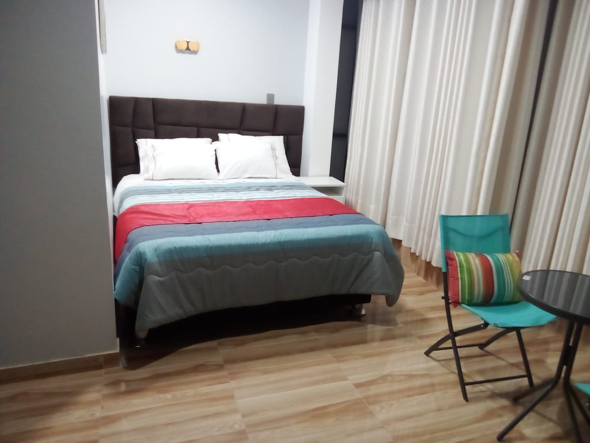 Pribadong double room, komportable at functional, perpekto para sa mga turista o business traveler sa Huamanga – Ayacucho. May double bed, pribadong banyo, mainit na tubig, WiFi, TV, at mesa na may mga upuan. May bintana sa loob na nagbibigay ng sariwang hangin at tahimik na kapaligiran. Madaling puntahan ang lokasyon, ilang hakbang lang mula sa land terminal, at may madaling access sa transportasyon at mga serbisyo.