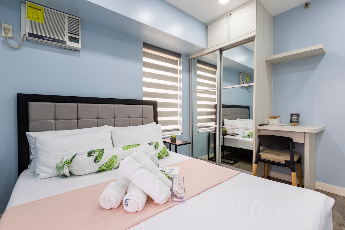Tuklasin ang aming maluwang at maliwanag na end unit na may isang kuwarto at balkonahe sa bagong itinayong Tower 4, Fern Residences. Idinisenyo para sa iyo ang aming marangyang unit na may estilong boutique hotel na may kumpletong kusina, kutson at sapin na may kalidad ng hotel, mesang pang‑kape na puwedeng gawing hapag‑kainan, washing machine, at mabilis na Wi‑Fi. Mainam ito para sa mga biyahero ng panandaliang pamamalagi at para sa mga gustong magkaroon ng nakakarelaks na staycation.