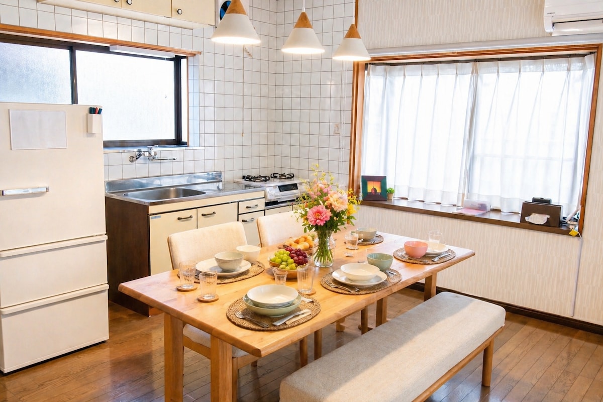Isang bahay na kahoy para makapagpahinga pagkatapos ng paglalakbay. Nire‑renovate namin ang isang lumang tuluyan kung saan mararamdaman mo ang init ng kahoy. May maluwang na kuwartong may estilong Japanese at kuwartong may estilong Western ang kuwarto, at puwedeng mamalagi ang mga pamilya. ● Suporta sa pagtatrabaho nang malayuan 20% diskuwento para sa mga pamamalaging 1 linggo o mas matagal pa 35% diskuwento para sa mga pamamalaging 1 buwan o higit pa ●Access 15 minutong lakad mula sa JR Sakaide Station. 3 minutong lakad mula sa pinakamalapit na hintuan ng bus, ang Torisu Shrine, na nasa daan papunta sa JR Sakaide Station. Kung sasakay ka ng kotse, humigit-kumulang 5 minuto ito mula sa Seto Ohashi Bridge. ●Saan Sa malapit, may tuloy - tuloy na hamburger shop na "Huellington", na siyang pinakamagandang gravy sa Japan, ang malikhaing izakaya na "Aai", ang natural na hot spring at bedrock bath, at convenience store at supermarket sa loob ng 5 minutong lakad. Mayroon ding isang libreng paradahan, kaya mainam ito kung magrerenta ng kotse. Japanese‑style ang lahat ng kuwarto kaya puwede kang mag‑enjoy sa isang pribadong bahay sa Japan. Perpekto para sa mga pamilyang may mga anak at mga grupong naglalakbay.
