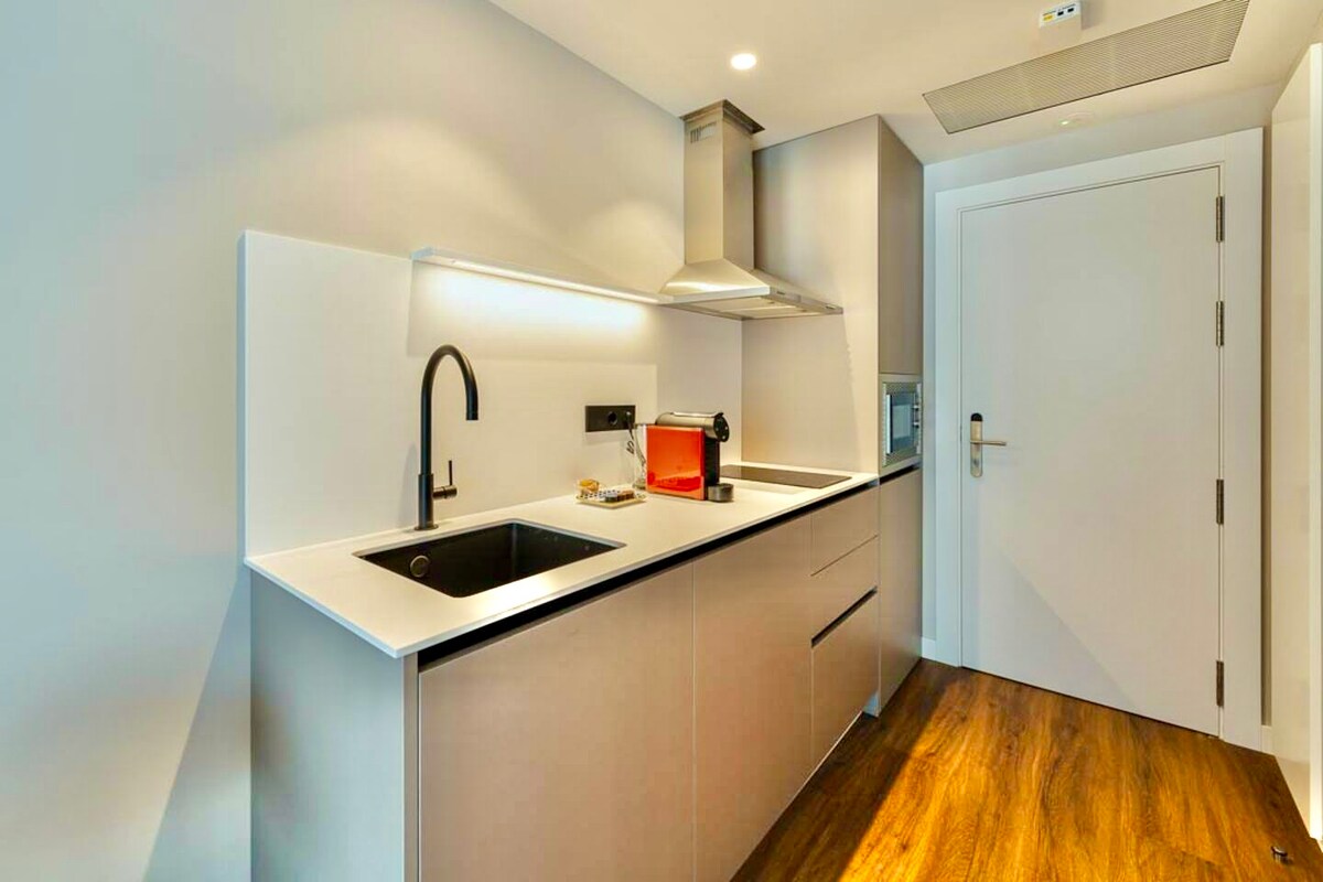 Ang aming mga studio na may double bed, ay may sukat na tinatayang 22 m2 at may mga tanawin ng interior patio o lungsod. Ang lugar sa kusina ay may coffee maker, toaster, microwave na may Grill, refrigerator o refrigerator, hob at mga pangunahing kagamitan. May shower at hairdryer ang banyo. Nakumpleto nila ang kanilang mga flat - screen TV facility, libreng wifi, kama na 150 x 200 cm. Ang iba 't ibang uri ng dekorasyon nito (functional, Mediterranean o sopistikado) ay lumilikha ng moderno at komportableng estilo sa mga kuwarto.