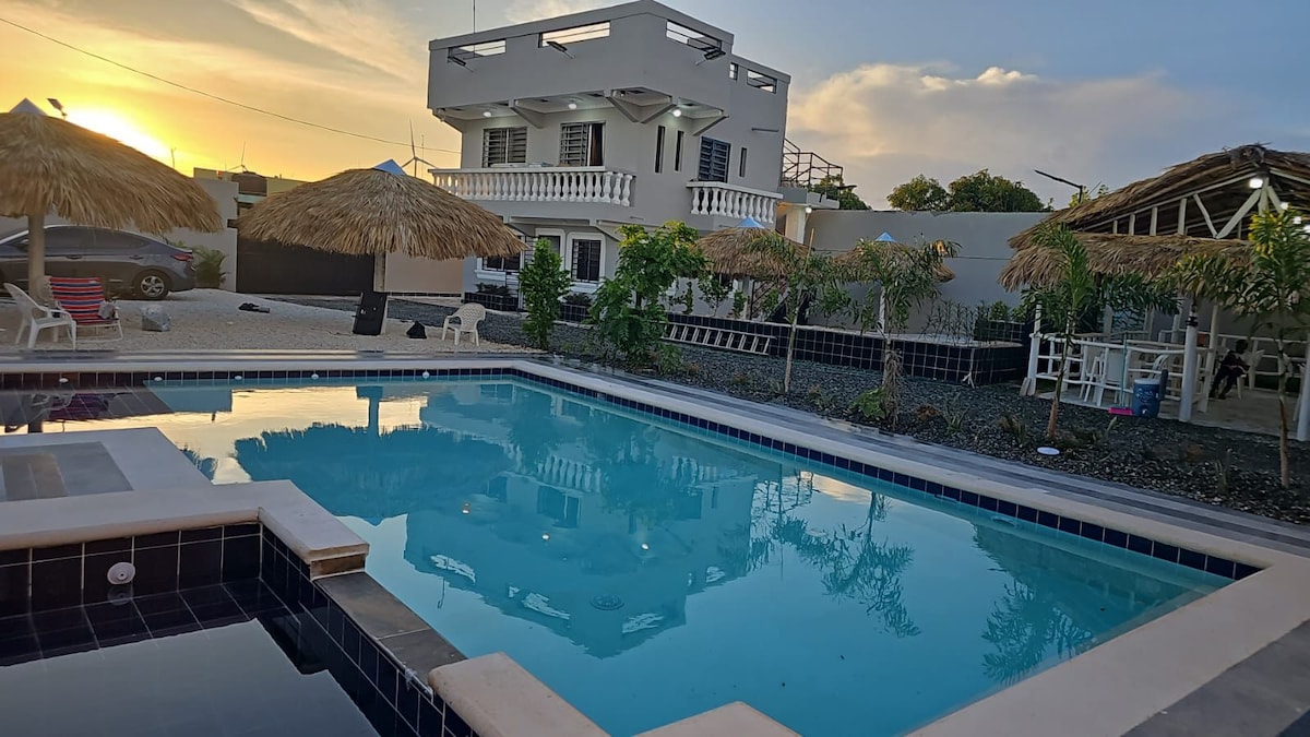 Inuupahan namin ang aming Ecological Vacation home sa magandang Dominican Republic, isang literal na paraiso sa mga bundok. Matatagpuan ito sa gitna ng isla na may 360 degree na tanawin ng mga nakapaligid na lambak, bundok, at tanawin. 15 minuto ang layo ng bahay mula sa bayan ng Constanza at dalawang oras mula sa Santiago Airport. Siyempre ito ay nilagyan ng 24/7 na kuryente, mainit na tubig, cable tv, at serbisyo sa internet, ngunit ito ay maganda ang kagamitan. Maaari itong tumanggap ng 20 magdamag na pakikipagsapalaran, dahil mayroon kaming limang malalaking silid - tulugan. May dalawang kusina at apat na buong banyo. Kung hindi man, ang bahay ay mayroong kapasidad na 150 tao, para sa kasal, kaarawan, at mga espesyal na kaganapan, lalo na kung isasaalang - alang ang aming pambalot sa mga porch at panlabas na patyo ay napakalaking. May hot tub/pool din kami para sa kasiyahan.