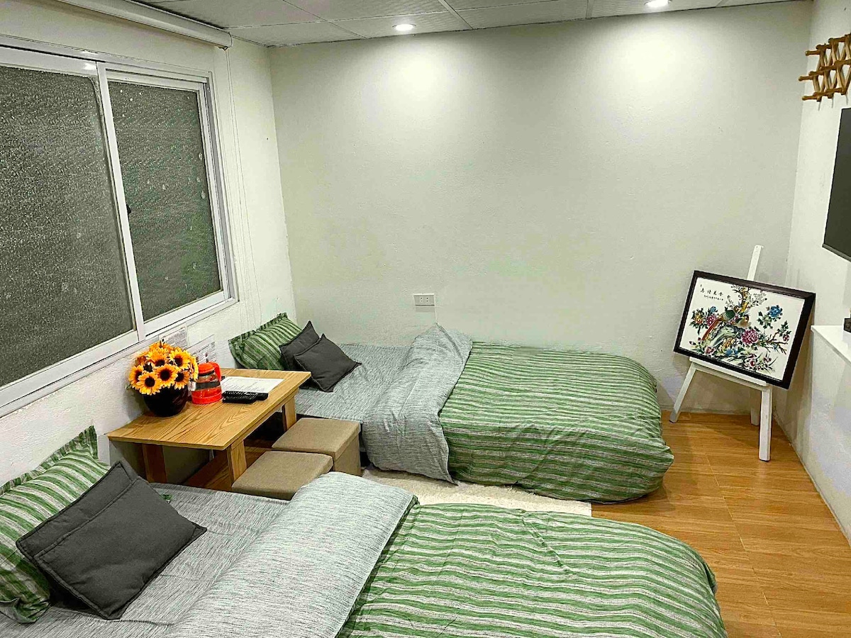 Ito ay isang kamangha - manghang rooftop - studio, na matatagpuan sa isang magandang kapitbahayan. Magugustuhan mo ang aking lugar dahil sa lokasyon, mga tao, at dekorasyon:* NAMAMALAGI SA AMING TULUYAN para mag - enjoy. - PINAKAMAGANDANG lokasyon - sentro ngunit sobrang tahimik - Bathtub sa rooftop balkonahe - NAGPAPALAMIG AT NAKAKARELAKS - Talagang handang tumulong ang mga host - Kumikislap na Malinis - MALIWANAG - puno ng mga ilaw - Libreng instant noodles, meryenda at tubig - PLEKSIBLENG oras ng pag - check in at pag - check out - Maagang bumababa ang mga bagahe at ang pag - iwan ng bagahe pagkatapos nito ay OK^^