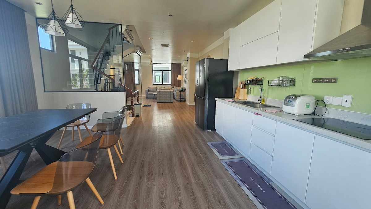 Natatangi ang disenyo at maingat na inayos ang PH Residence kaya mainam ito para sa mga propesyonal na nagtatrabaho nang malayuan at para sa mahahabang pamamalagi ng pamilya. Napapaligiran ng mga halaman sa Suoi Rao, nag-aalok ito ng tahimik at nakakarelaks na kapaligiran para sa mga lingguhan o buwanang pamamalagi. May kumpletong kusina, bukas na sala at silid‑kainan, mga naka‑air con na kuwartong may mga pribadong banyo, at pribadong pool at jacuzzi na may salt‑electrolysis system ang patuluyan na nasa loob ng malawak na hardin para sa privacy at katahimikan.