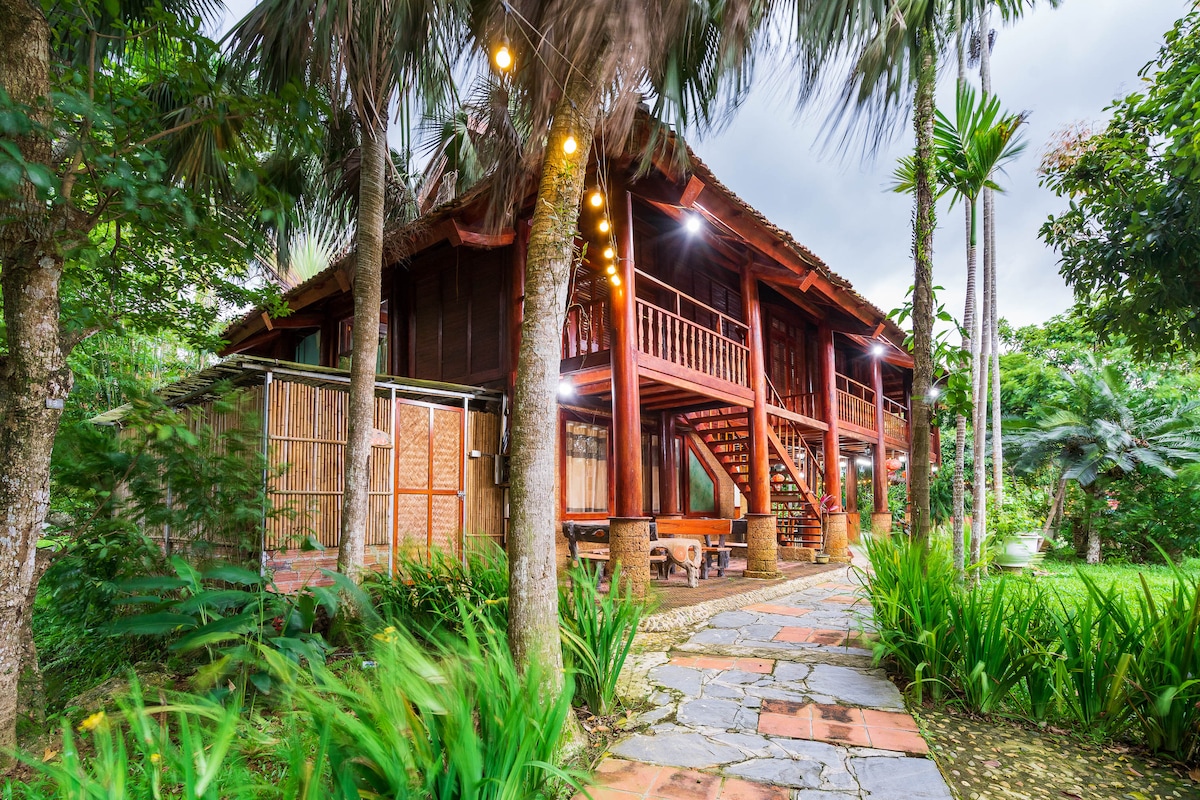 Nag - aalok ang Duong Lam Village ng komportable at marangyang tuluyan, na pinaghalo sa kalikasan. Ang hardin ay berde, puno ng madamong kulay, na sinamahan ng mga rustic, eco - friendly na materyales, na lumilikha ng isang nakakarelaks at sariwang kapaligiran. Ito ay isang perpektong stopover para sa pamilya o maliit na grupo kung saan maaari mong hayaan ang iyong sarili sa mapayapang lugar ng lumang nayon, mag - enjoy ng mga sandali ng ganap na relaxation pagkatapos ng nakababahalang araw ng trabaho at pag - aaral sa kabisera.