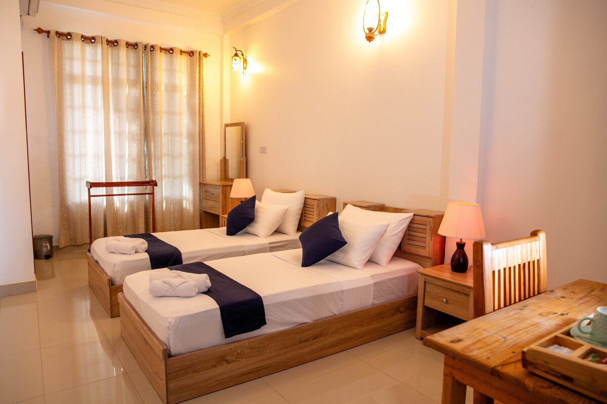 Isang tipikal na guest house na matatagpuan sa gitna ng kihaadhoo island sa Maldives. Ang guest house ay 2 minuto lamang ang layo mula sa beach at napaka - pribado. Mayroon kaming 4 na kuwartong may bed and breakfast. Puwedeng isaayos ang iba pang pagkain kapag hiniling sa aming in - house cafe. Nagbahagi kami ng mga speed boat araw - araw maliban sa Biyernes na aalis mula sa Male nang 12:30 ng hapon.