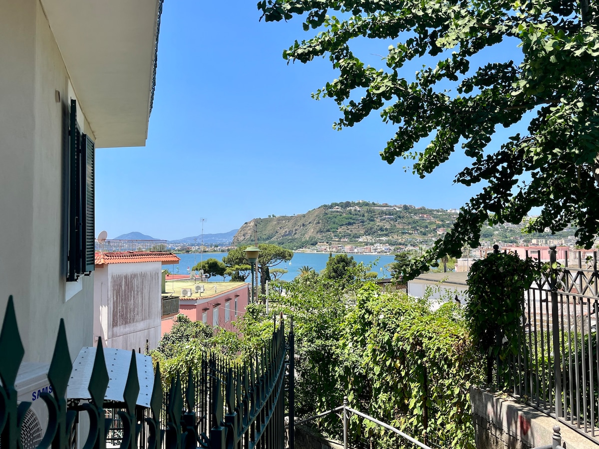 Ang Villa Domus Artis ay isang kaakit - akit na beach house na may estilo ng Mediterranean na may nakamamanghang tanawin ng Golpo ng Pozzuoli at ng bundok Vesuvius. May direktang access ito sa beach ng Marina Grande, na isang minutong lakad ang layo. Ang malaking terrace kung saan matatanaw ang dagat ang dahilan kung bakit natatangi ang bakasyunang bahay na ito. Masisiyahan ang mga bisita sa napakarilag na paglubog ng araw at mapayapang panahon dahil matatagpuan ang bahay sa tahimik na residensyal na lugar. Kasabay nito, may maikling lakad lang ito mula sa sentro ng bayan at mga arkeolohikal na lugar.