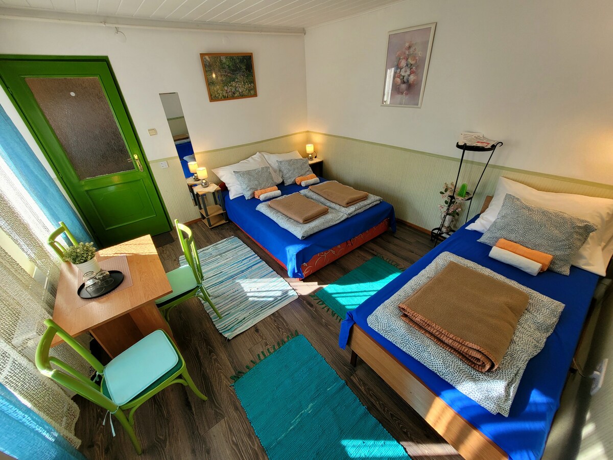 Dalhin ang buong pamilya sa magandang lugar na ito na may maraming oportunidad para magsaya. Kung sasamahan mo ang mga kaibigan o kasamahan mo, nasasabik kaming tanggapin ka! Tinatanggap ka namin sa isang tahimik na kapitbahayan sa isang berdeng zone na may malawak na tanawin ng Danube! Ang Danube ay din ang perpektong pagkakataon para sa pangingisda at hiking. Kung may kasama kang maliit na bata, tatanggapin ka nang may dalang kuna, railing sa hagdan, fall stopper, lampin, paliguan ng sanggol, at mataas na upuan.