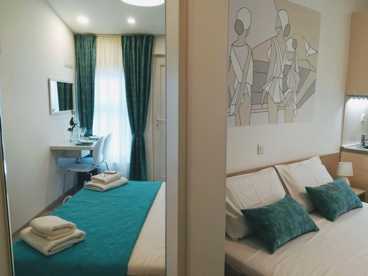 Maaliwalas, maaliwalas, at Mediterranean na estilo. Nagniningning ang malaking kuwartong ito (27sqm/290 s.ft.) na may nakalantad na pader na bato noong ika -19 na siglo at mga nakalantad na solidong kahoy na sinag. Ang mga likas na materyales ay nagsasama - sama sa isang makinis na palette ng kulay at isang koleksyon ng mga rustic at modernong muwebles. Matatanaw sa malalawak na bintana na may tanawin ng lungsod ang pedestrian street sa Old Town ng Split. Nasa gitna ka ng Split, sa tabi mismo ng Riva waterfront promenade at napapalibutan ka ng lahat ng pangunahing atraksyon, restawran, at cafe - bar. Bahagi ng Porto Nativo Split.