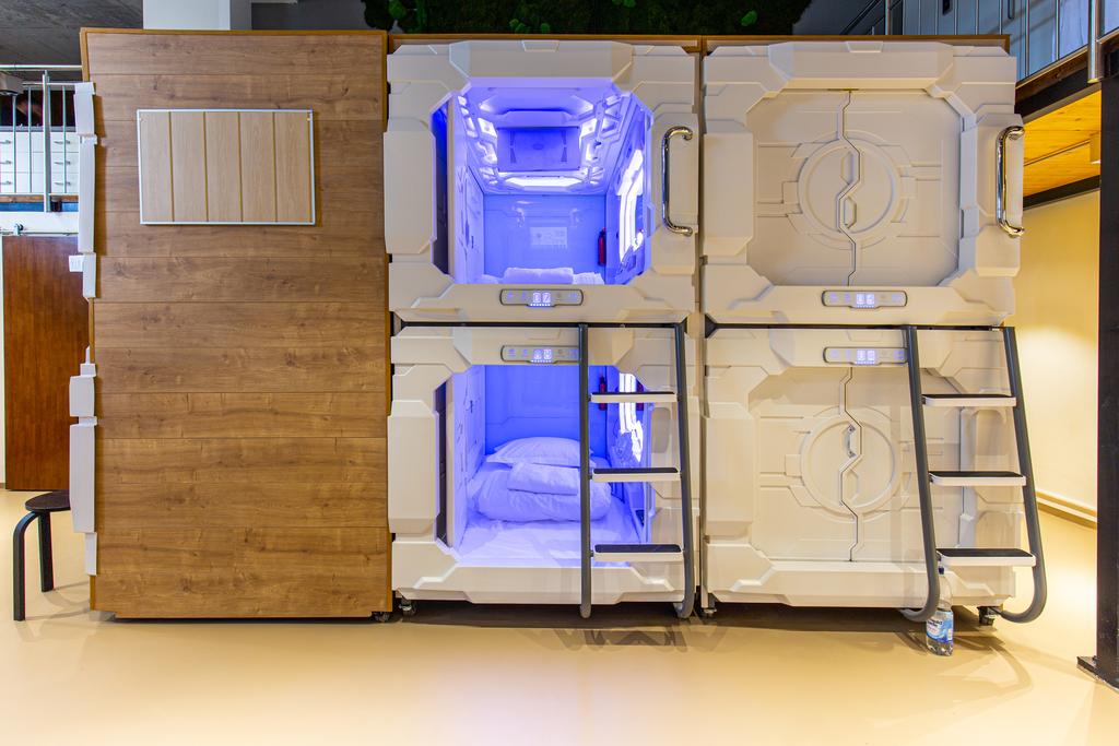 Maligayang pagdating sa aming capsule hotel! Nag - aalok ang aming natatanging tuluyan ng moderno at minimalist na karanasan na may mga pribadong tulugan sa common area. Idinisenyo ang bawat kapsula para sa kaginhawaan at privacy, na nag - aalok ng komportable at nakakarelaks na kapaligiran. Nilagyan ang mga capsule ng mga pangunahing amenidad tulad ng pag - iilaw, mga socket at maliit na storage area para sa iyong mga personal na gamit.