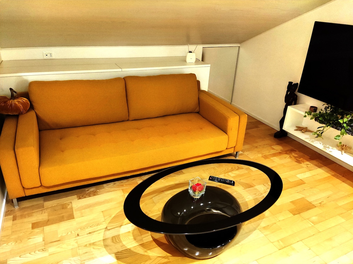 Matatagpuan ang apartment na Venus at Adone sa sentro, may klasikong estilo at may terrace. May air conditioner sa silid‑kainan na nakakapalamig sa maraming kuwarto sa tag‑init at pellet stove na nakakabit sa mga radiator para sa taglamig. Mayroon itong double bedroom na may karagdagang single bed, single bedroom na may single bed, sala, at banyo. Walang elevator at nasa pinakamataas na palapag ang apartment.