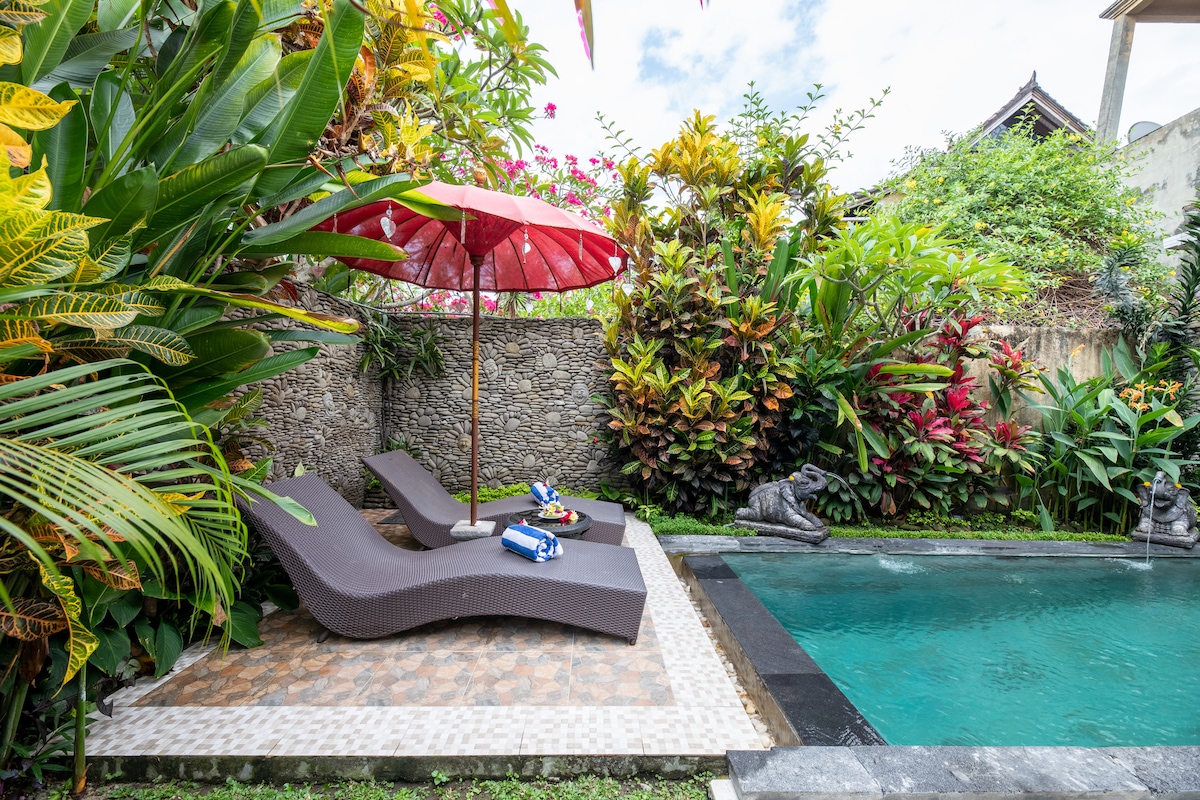 Om Swastyastu, Selamat Datang! Maligayang pagdating! Nakatira kami sa Penestanan Kelod, isang tahimik na nayon malapit sa Ubud. Dito, hindi mo maririnig ang mabigat na trapiko ng lungsod. Sa halip, napapaligiran ka ng mga kanin, maliliit na tindahan, restawran, villa, at napakagiliw na tao. Ang villa ay perpektong matatagpuan sa isang maliit na daanan malapit sa aming bahay kung saan magkakaroon ka ng iyong sariling intimacy nang walang pakiramdam na masyadong nakahiwalay. Magkakaroon ka ng pribadong pool, kusina na may malaking hapag kainan at 2 silid - tulugan na may sariling banyo at A/C.