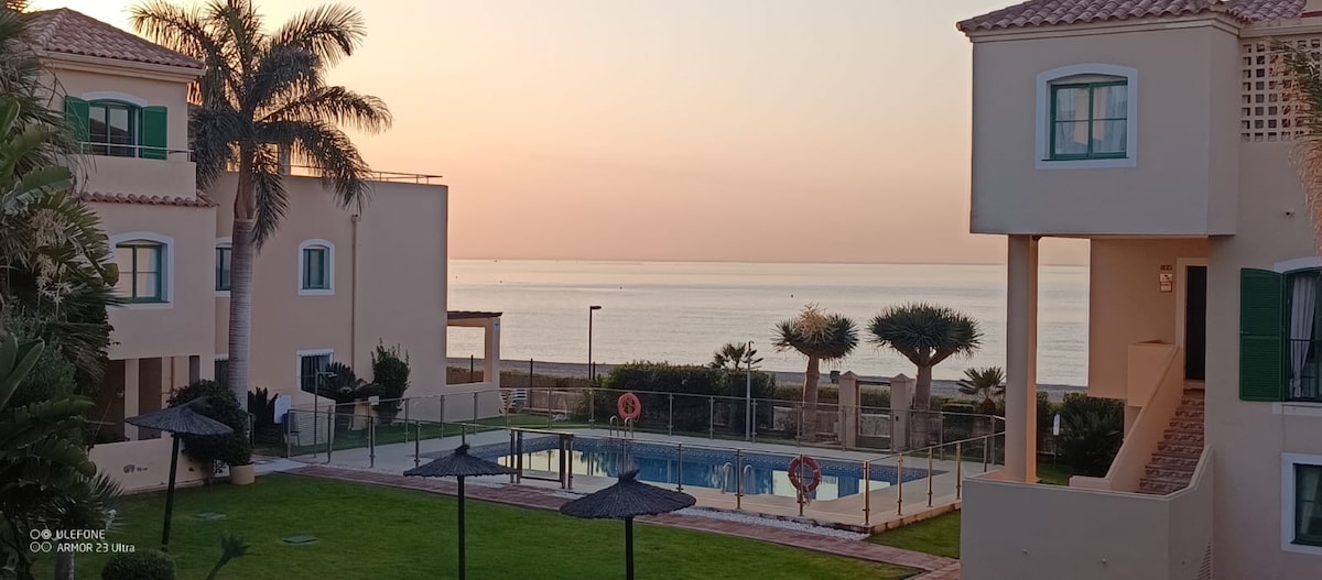 Mararangyang penthouse sa tabing - dagat na may direktang access sa beach. Mga malalawak na tanawin ng Mediterranean mula sa bawat sulok. Halos pribadong azotea, na ibinabahagi lamang sa isa pang property, na perpekto para sa pagrerelaks. 4 na swimming pool (isang pinainit at bukas sa buong taon), garahe at lahat ng amenidad. Perpekto para sa hindi malilimutang bakasyon sa eksklusibo at tahimik na kapaligiran. Madiskarte rin ang lokasyon nito para bisitahin ang Costa del Sol, Cádiz, ang mga hindi kapani - paniwala na beach nito o maging ang Gibraltar.