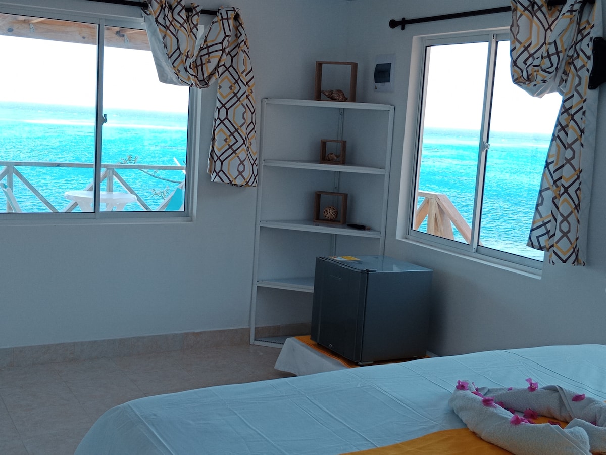 Apartamento con vista al mar de los 7 colores, el arrecife, las montañas y los cayos del parque nacional natural ubicado en la hermosa isla de providencia. En este espacio podrás disfrutar de unas merecidas vacaciones junta al amanecer.
