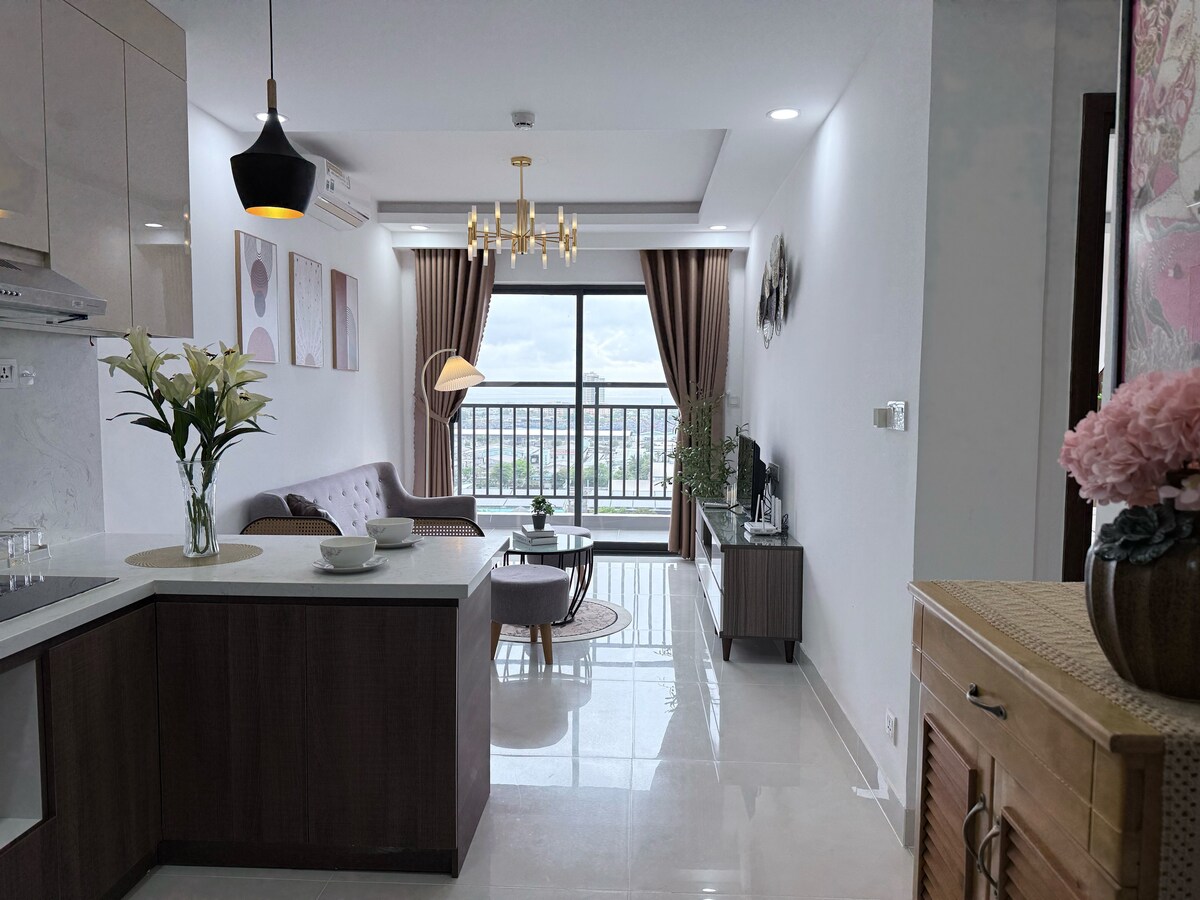 Malawak na apartment na 110m² na may tanawin ng Han River at mga kilalang tulay ng Da Nang. Matatagpuan sa masiglang Bạch Đằng Street, sa tapat ng ilog at maikling lakad lang mula sa Han Market, puwedeng i‑enjoy ng mga bisita ang fire show ng Dragon Bridge sa 9:00 PM tuwing weekend mula sa sarili nilang balkonahe. Nakakapagpahinga at elegante ang tuluyan na may mga kulay navy at kahoy. Mainam ito para sa mga pamilya, business traveler, at long stay dahil sa araw‑araw na housekeeping, libreng pool, gym, at table tennis.