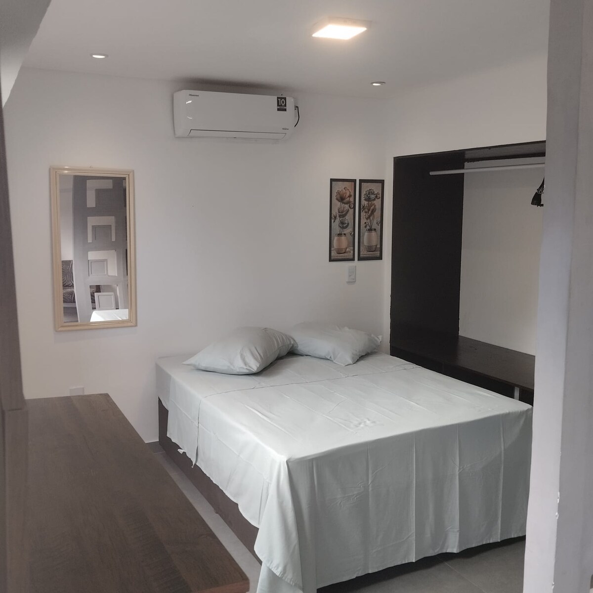 Suíte com ar-condicionado a 350 metros da praia