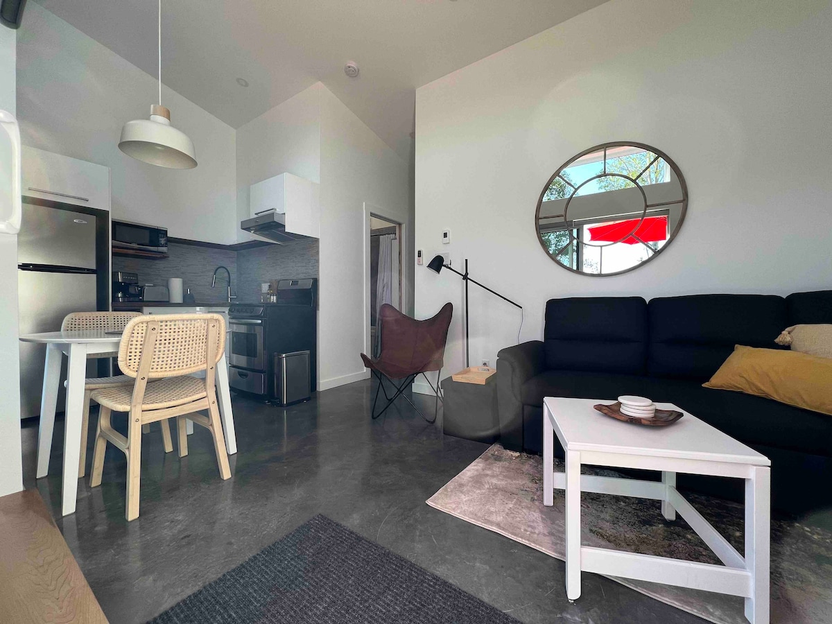 Buong isang silid - tulugan na apartment at balkonahe na matatagpuan sa Gaspé city center. Bagong ayos at muling pininturahan. Nilagyan at nilagyan ng bago. Matatagpuan malapit sa lahat ng mga serbisyo sa pamamagitan ng paglalakad: mga restawran at bar, shopping center, kolehiyo, promenade sa kahabaan ng bay atbp. Ang kusina ay may lahat ng kailangan mo para sa pagluluto: lutuan, babasagin at kagamitan. Mabilis ang wifi at may kasamang paradahan. Perpekto para sa mag - asawa o mga manggagawa na lumilipas.