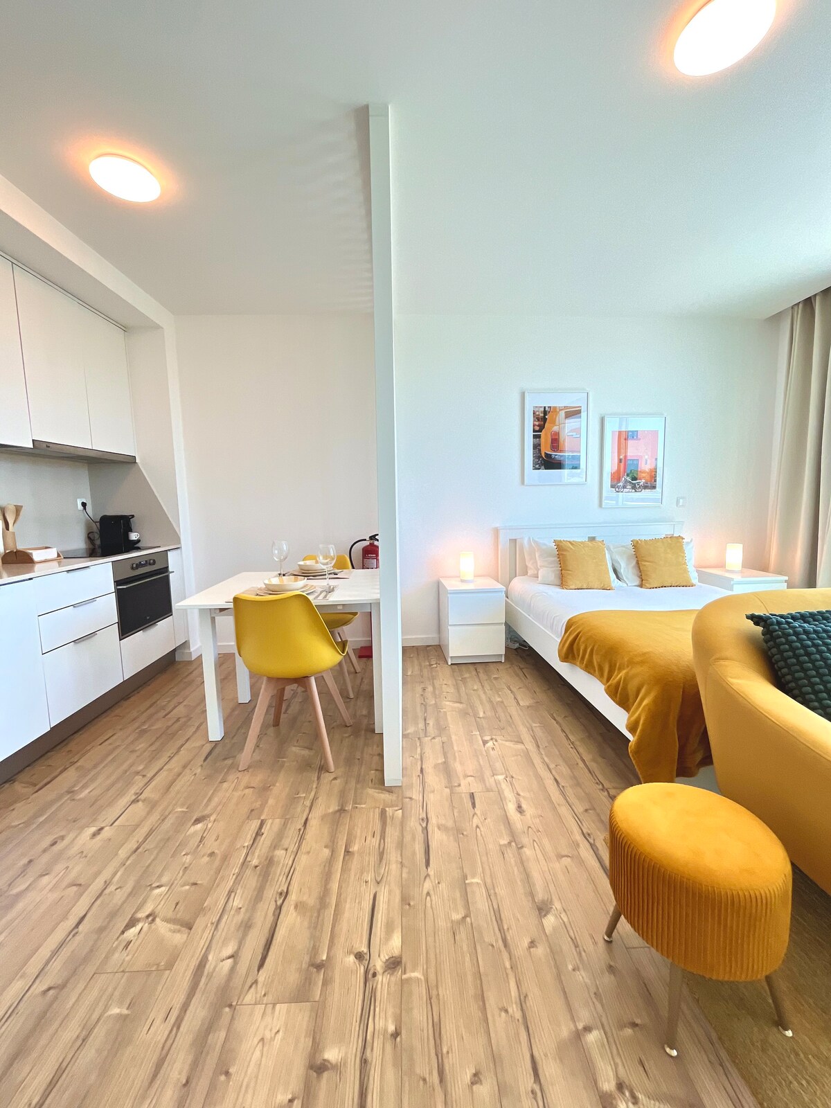 Modern at komportableng apartment na may isang kuwarto sa gitna ng Aveiro – Beira – Mar. Napakagandang lokasyon, malapit sa mga kanal at pangunahing lugar ng restawran — perpekto para sa pagtuklas sa lungsod nang naglalakad. Moderno at functional na tuluyan na idinisenyo nang isinasaalang - alang ang kapakanan. Ang silid - tulugan na may komportableng king - size na higaan (180 cm) at kusinang may kumpletong kagamitan na may dishwasher at mga kagamitan. Komportableng sala na may Wi - Fi, air conditioning, at Smart TV. Banyo na may mga Ritual na amenidad.