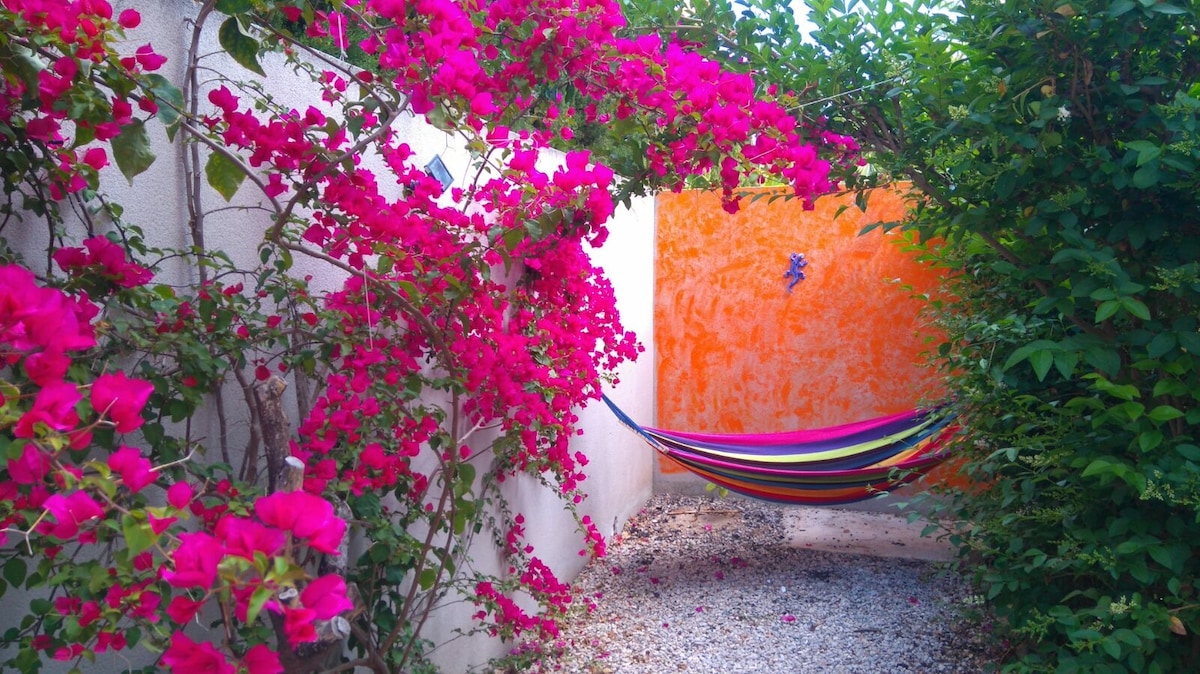 Desconecta de la rutina en este alojamiento único y relajante. Recien reformado, la luz del sol te acompañará todo el día y por la noche podrás disfrutar de las estrellas en el chill out .estaras en una zona tranquila a pocos minutos del centro histórico .olvídate del coche .lo puede aparcar delante mismo del piso y tienes la parada de bus cada hora para llegar al centro,donde es complicado aparcar en temporada alta. Al lado tienes el Club U,genial para tomar algo,piscina espectacular,chill out