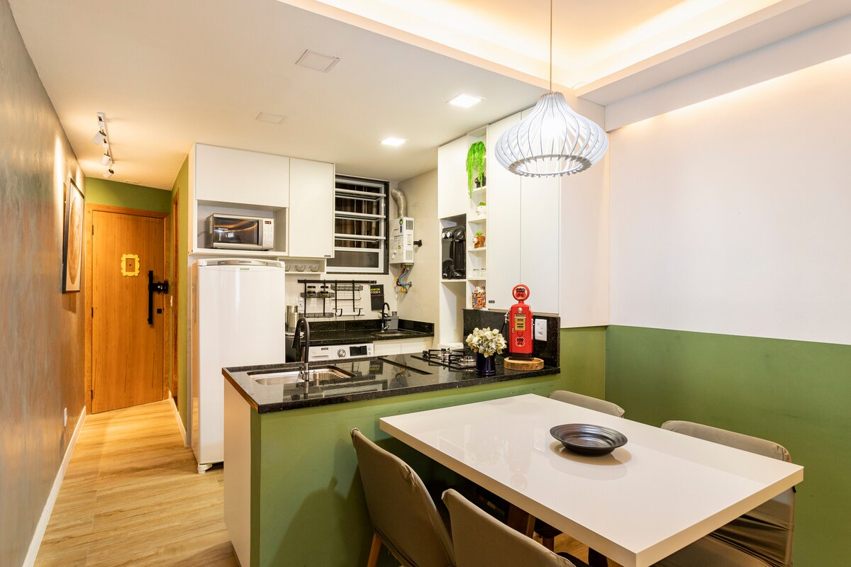 Magandang Apartamento ★★★★★ Inayos noong 2022 at may magandang tanawin ng beach. Mag‑relax sa eleganteng lugar na ito na maraming kaginhawa. May air conditioning at NETFLIX sa gusaling idinisenyo ni Oscar NIEMEYER, ang pinakamalaking arkitekto sa Brazil. Maraming restawran, Sushi, Vegan, Steak-house, Farmacia at mga Pamilihan at katabi ng Windsor Hotel. Mainam para sa mga Mag‑asawa, Pamilya, at Corporate Travel. Tumatanggap kami ng mungkahi para sa pangmatagalang matutuluyan.