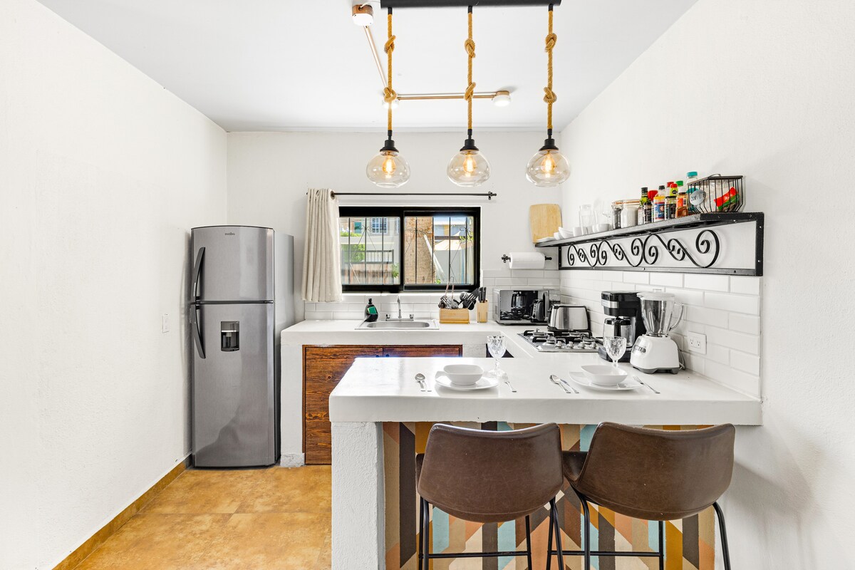 Click my profile to see all listings at Swell Todos Santos (4.97 Stars, 656 reviews) Inside you’ll find modern, airy spaces with lots of natural light and Starlink wifi. Outside you can relax in the hammock on your private rooftop balcony or kick back by the pool and gas fire pit. Our property is situated about a 7 minute walk from the beach, 1.5 miles/2.5km from downtown, and 0.6 miles/1km from a local market and a few restaurants.