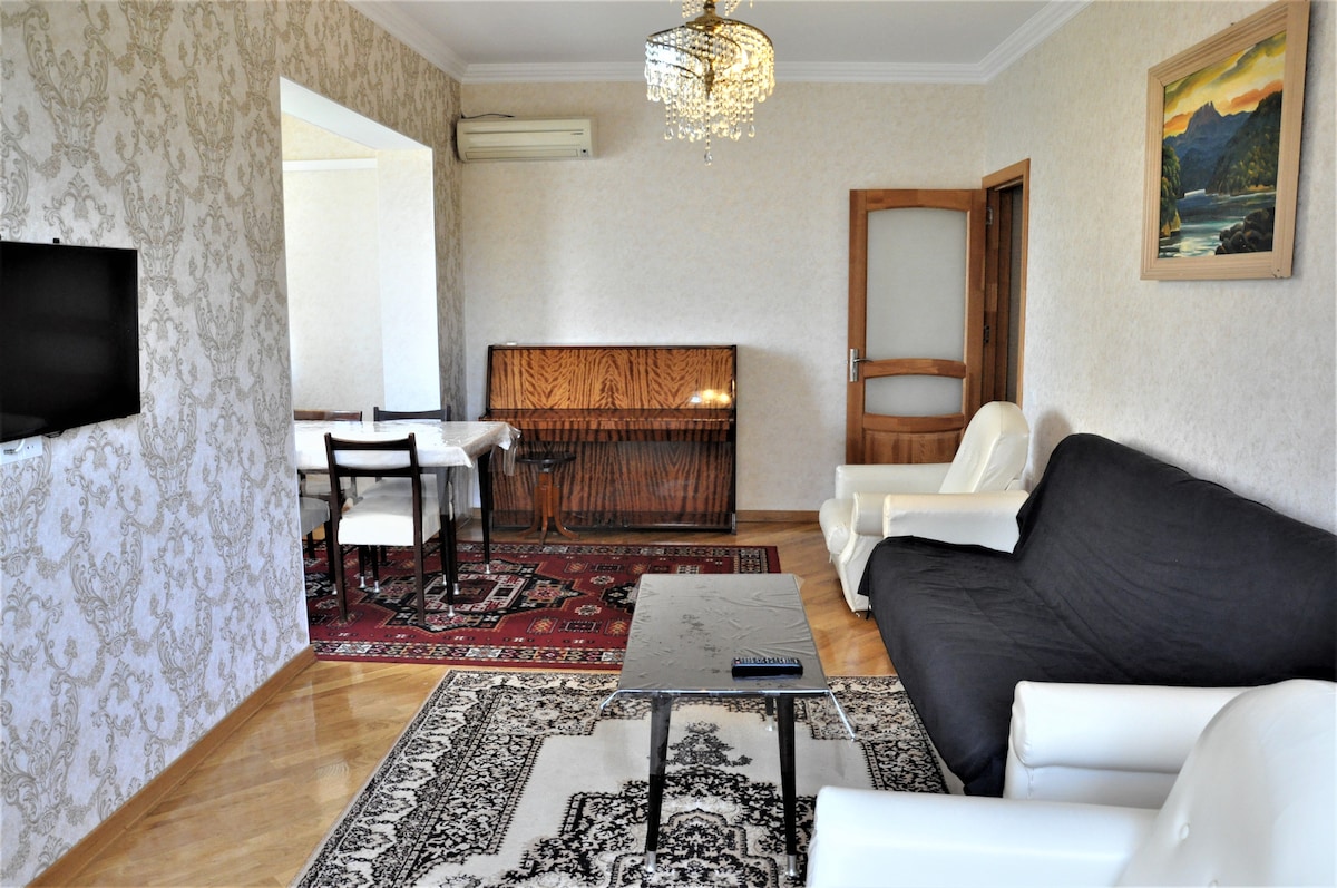 Matatagpuan ang fully serviced apartment na 300 metro mula sa Heydar Aliyev Cultural Center. 14 na milya ang layo ng Heydar Aliyev International Airport. Ang Nizami Street 1.8 mi, Icherisheher at Maiden Tower ay 3.4 mi habang ang Azerbaijan Opera at Ballet Theatre ay 1.6 milya lamang ang layo. Itinayo noong panahon ng Sobyet, ang maaliwalas na patag na ito ay ginawang moderno sa isang naka - istilong paraan. Bukod sa pagkakaroon ng kaluluwang Sobyet, mayroon din itong Western aura. Kasama ang nostalhik na mood nito, may privacy, kaginhawaan, at maginhawang lokasyon.
