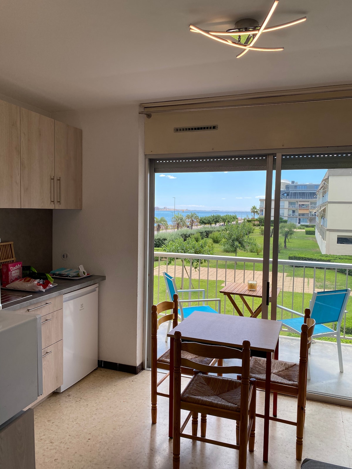 Ganap na naayos na 28m2 apartment na may loggia sa tahimik na lugar na 5 milyong lakad mula sa lahat ng amenidad (thermal bath, beach, merkado, restawran, atbp.) New bed rapido 140 (madaling pagbubukas) Kusina na may kagamitan: induction hob, oven, microwave, refrigerator/freezer nespresso coffee maker, washing machine, iron at ironing board Aircon Wifi internet at TV Loggia no overlook 5 m2 nilagyan ng mga upuan sa mesa, stretcher Ligtas na 8m2 na cellar Mga Linen: May mga linen at tuwalya