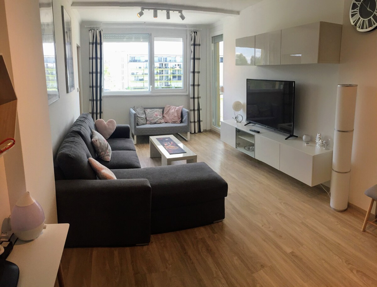 Matatagpuan ang aming bagong apartment sa bagong bahagi ng Siófok, 10 minutong lakad lang ang layo mula sa Lake Balaton. Ang bahaging ito ng lungsod ay napaka - tahimik, malayo sa maingay na sentro. Perpektong lugar para makapagpahinga ang mga pamilya at mag - asawa. Ang kapitbahayan ay komportable; ito ay ganap na bagong itinayo na may magagandang bahay - bakasyunan. Ang maluwang na balkonahe mula sa sala ay isang magandang lugar para sa wine sa gabi at mga pag - uusap. Ang pool sa hardin ay ang perpektong karagdagan sa iyong bakasyon para matamasa mo ito anumang oras.