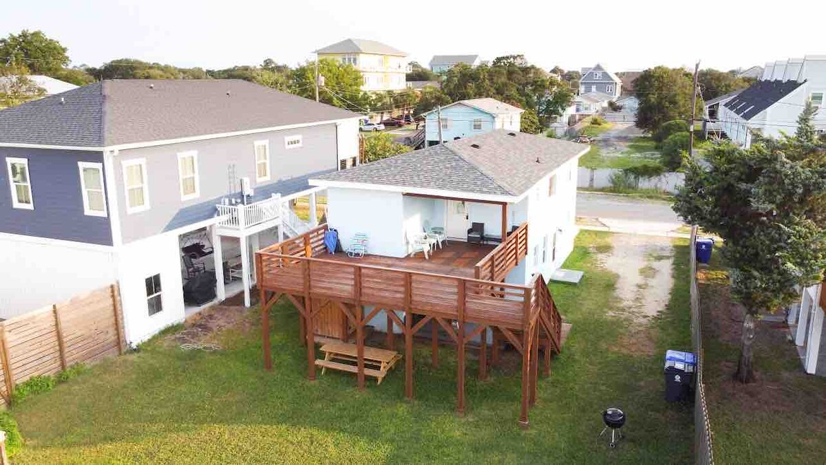 Maligayang Pagdating sa Kapitan at Ginger! 3 minutong lakad lang ang maluwag na bahay na ito mula sa beach access! Dalawang kalsada lang ang nakahiwalay sa iyo mula sa mabuhanging beach! May kasamang buong pribadong banyo ang bawat kuwarto. Tatlong kuwento ng kasiyahan sa beach na may; malaking common area sa buong ikalawang palapag, at dalawang tahimik na kuwarto sa kama sa ikatlong palapag.