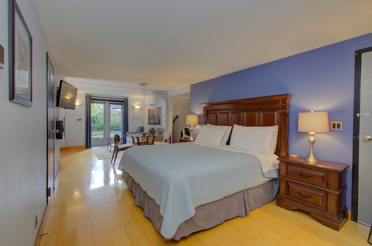 Malapit ang patuluyan namin sa mga restawran, magagandang tanawin, parke, beach, sining, at kultura. Magugustuhan mo ang aming tuluyan dahil sa astig na boutique na dating nito, ganap na pribado ito, at bagong‑bagong gusali ito na may mga bagong kasangkapan. Pakiramdam ng banyo na nasa spa ka, pinainit na sahig, sariwa, at malinis na disenyo! Kamangha-mangha ang PANLABAS NA KUWARTO! Infrared heat na nakalagay sa bitayan para sa komportableng pagkain sa taglamig at tag-init. Mainam ang aming patuluyan para sa mga magkasintahan, mga solo adventurer, at mga business traveler. Hindi namin pinapahintulutan ang mga naninigarilyo/paninigarilyo.