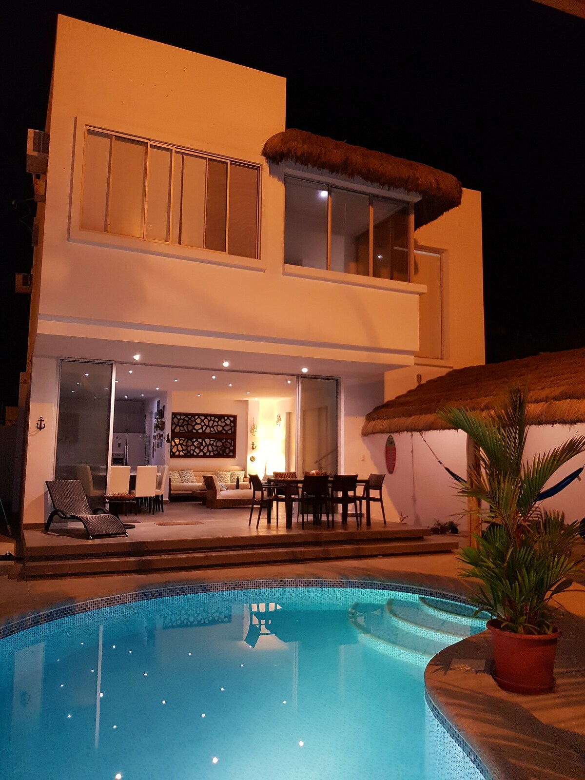 Maligayang pagdating sa aming beach house sa Ballenita. Ang maluwag at tahimik na bakasyunan na ito ay ang perpektong pasyalan para sa mga naghahanap ng nakakarelaks na bakasyon sa tabi ng dagat. 25 minuto lang mula sa Salinas at 45 minuto mula sa night - life ng Montanita. •Pribadong infinity pool, para sa iyong eksklusibong paggamit sa panahon ng iyong pamamalagi. Nasa itaas ang suite ng mga may - ari, pero hindi ito abala sa panahon ng pamamalagi mo. • 5 minutong lakad lang ang beach. • Paliguan sa labas •Smart TV at Wi - Fi • ilang minuto lang ang layo ng mga lokal na restawran. •Pribadong villa na may gated wall.
