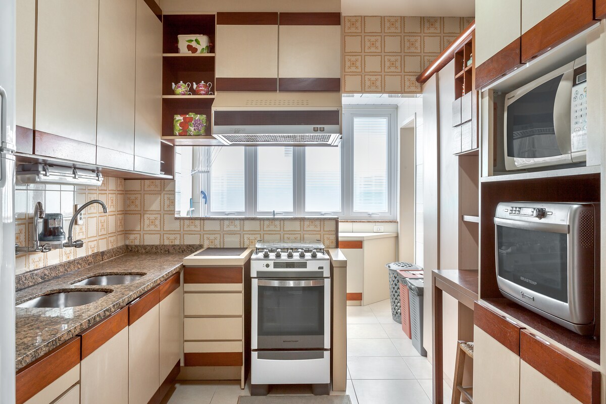 Mataas na pamantayan APARTMENT na may 146 m, 3 en-suites, 1 na may Jacuzzi, Wi-Fi, Air conditioning at TV sa sala at sa 3 en-suites, balkonahe na may barbecue, kumpletong kusina, 2 malalaking parking space para sa pickup trucks, labahan, gas shower, plantsa at dryer (220v outlets), 600 metro mula sa central beach ng Balneário Camboriu, malapit sa mga pangunahing: Av Brasil at Av Atlantica at Igreja Matriz Central. Malapit ang supermarket, mga botika, at panaderya kaya kayang puntahan ang lahat nang naglalakad. Para lang sa mga pamilya at magkasintahan ang matutuluyan.